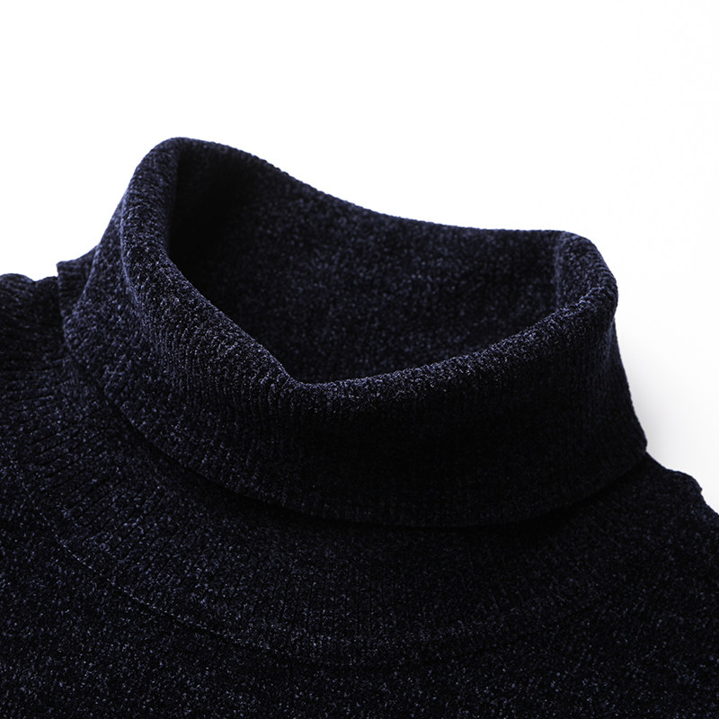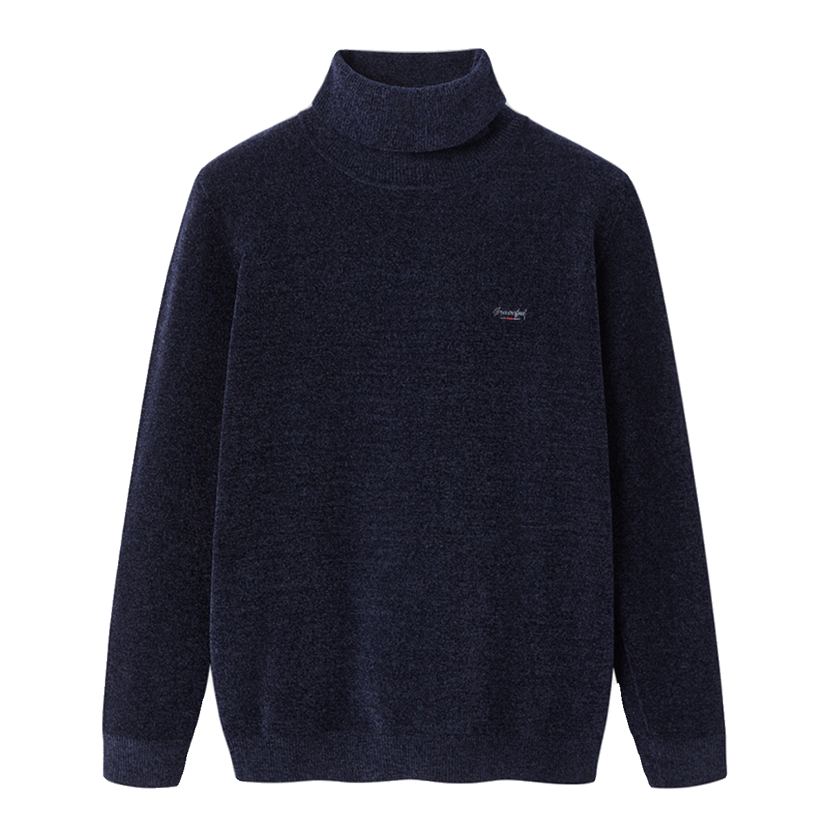 品牌同款2023冬季男士纯色雪尼尔柔软时尚休闲可翻高领保暖针织衫