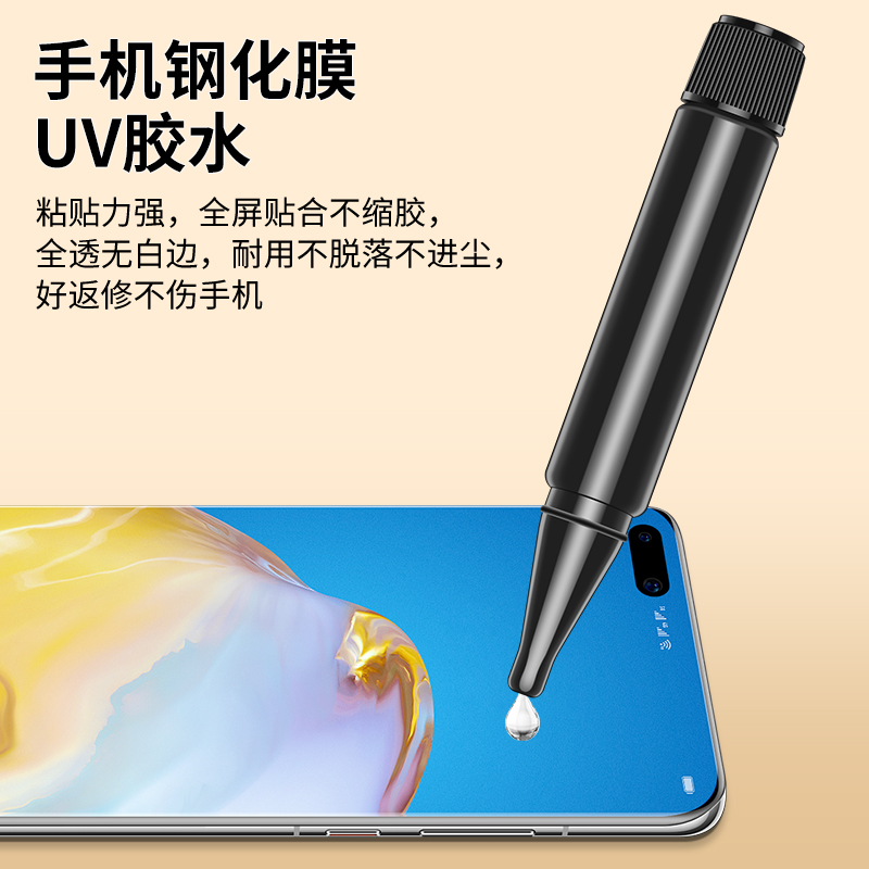 UV贴膜胶水曲面屏手机钢化膜用紫外线固化液态胶低气味2g凝固工具