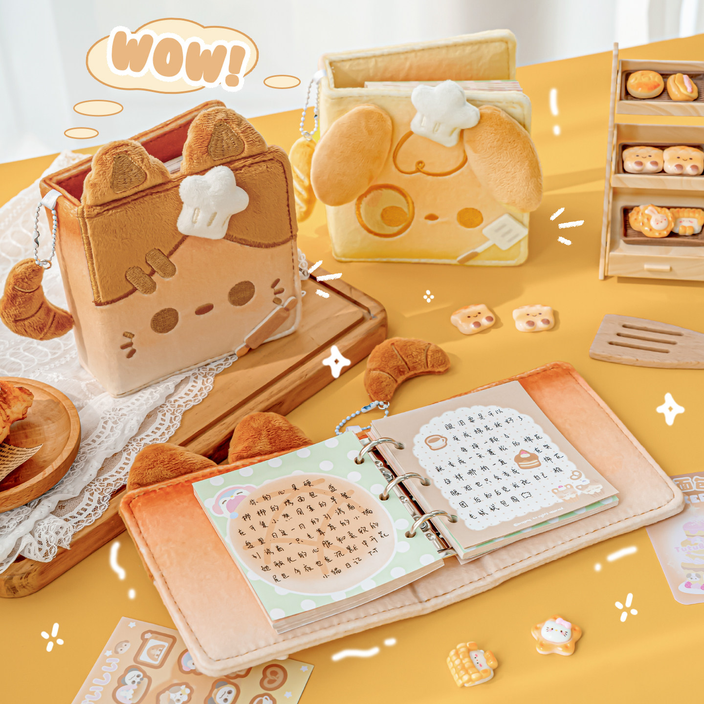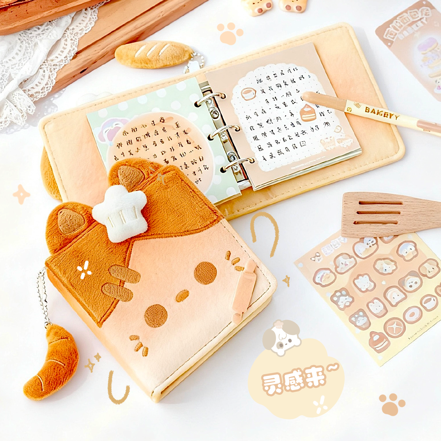 RosyPosy柔设毛绒活页手帐本笔记本本子高颜值可爱面包便携随身本超萌冬季暖暖烘焙面包趣味手账礼盒