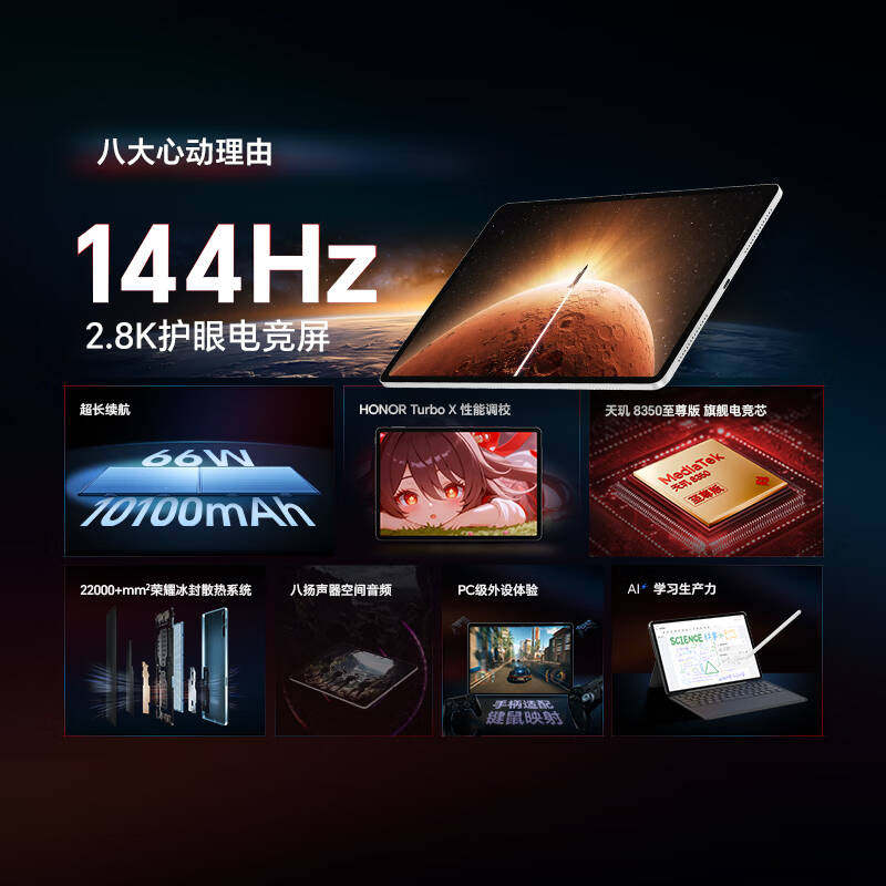 honor/荣耀 平板GT 2.8K护眼电竞屏长续航游戏办公AI学习平板电脑