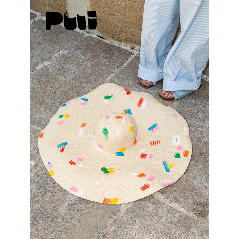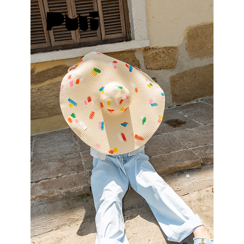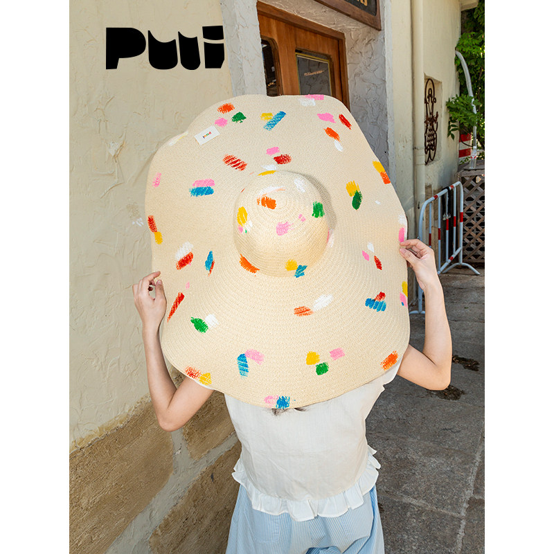 puui原创生活巨大遮阳帽超大帽檐防晒草帽海滩拍照神器夏日彩色帽