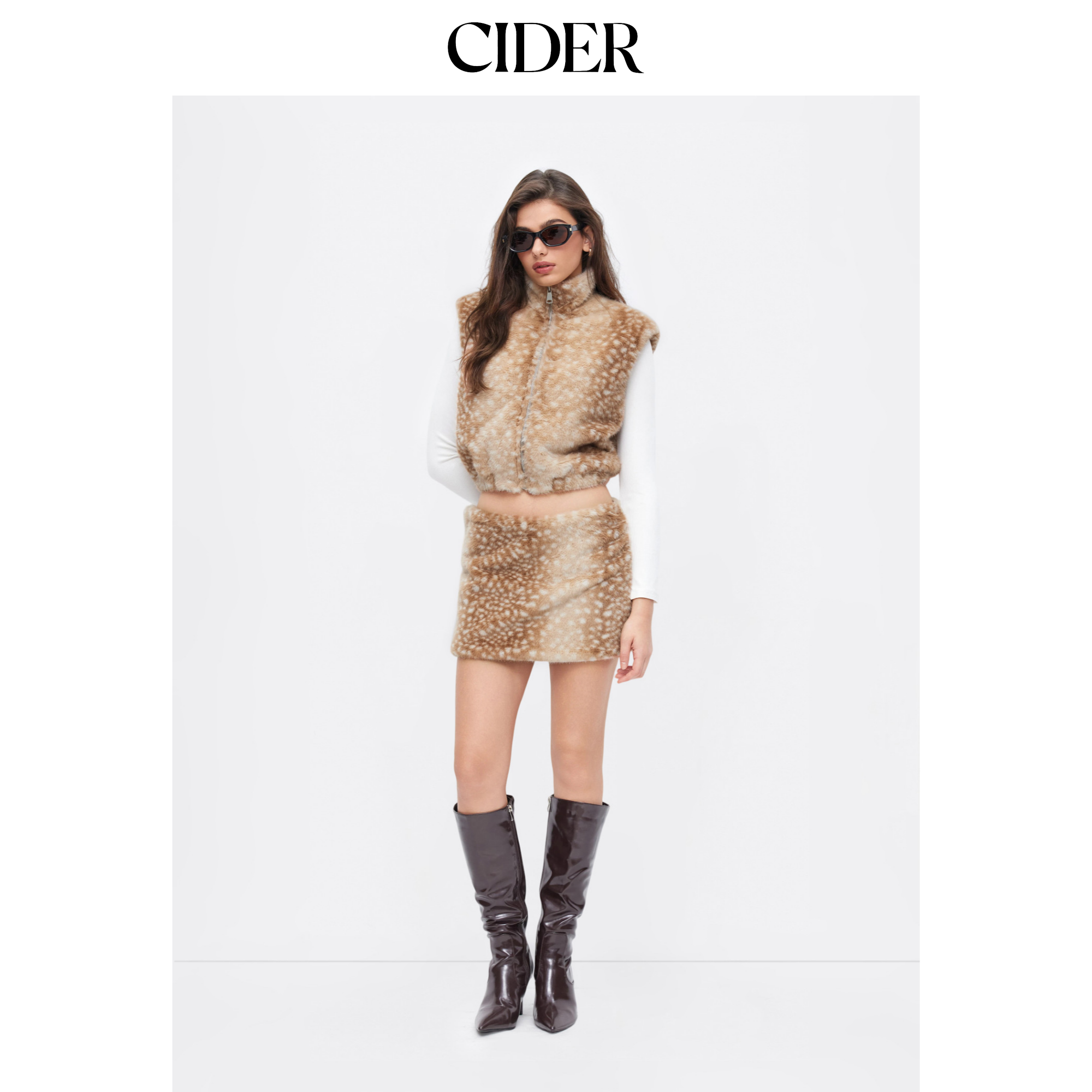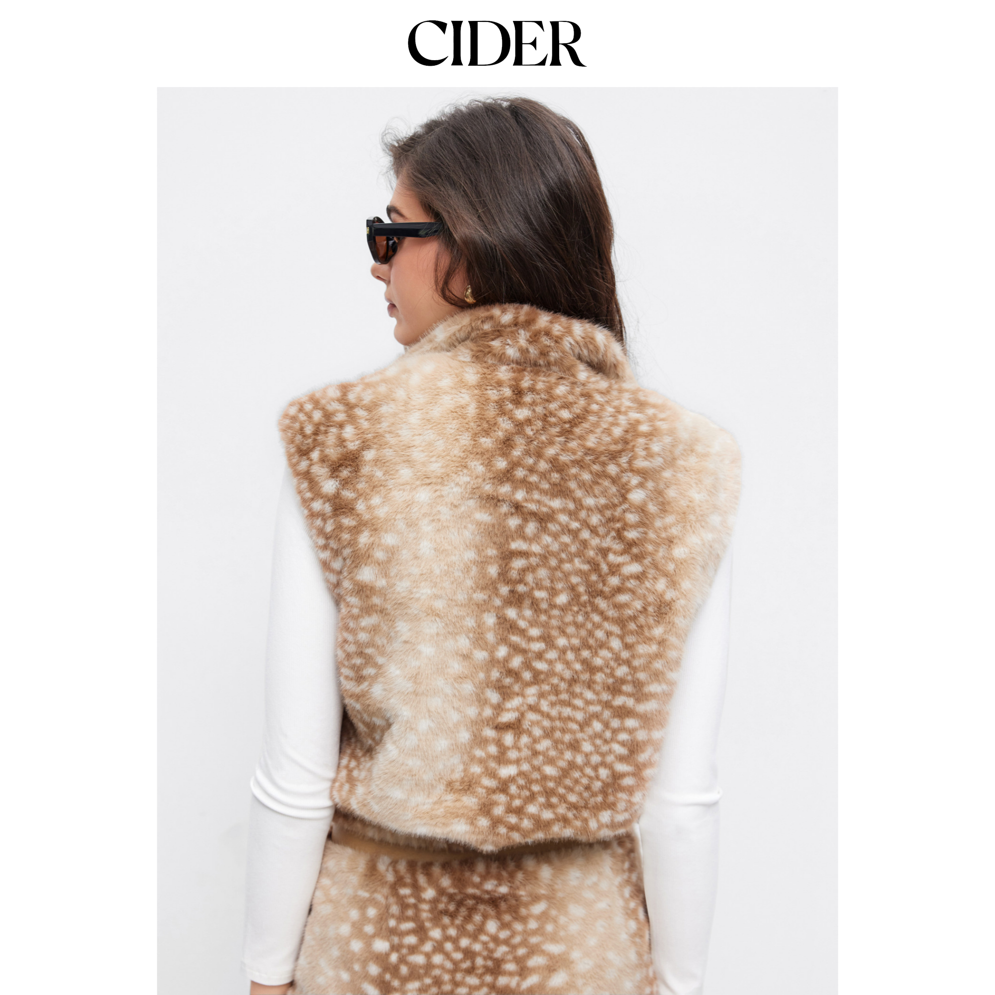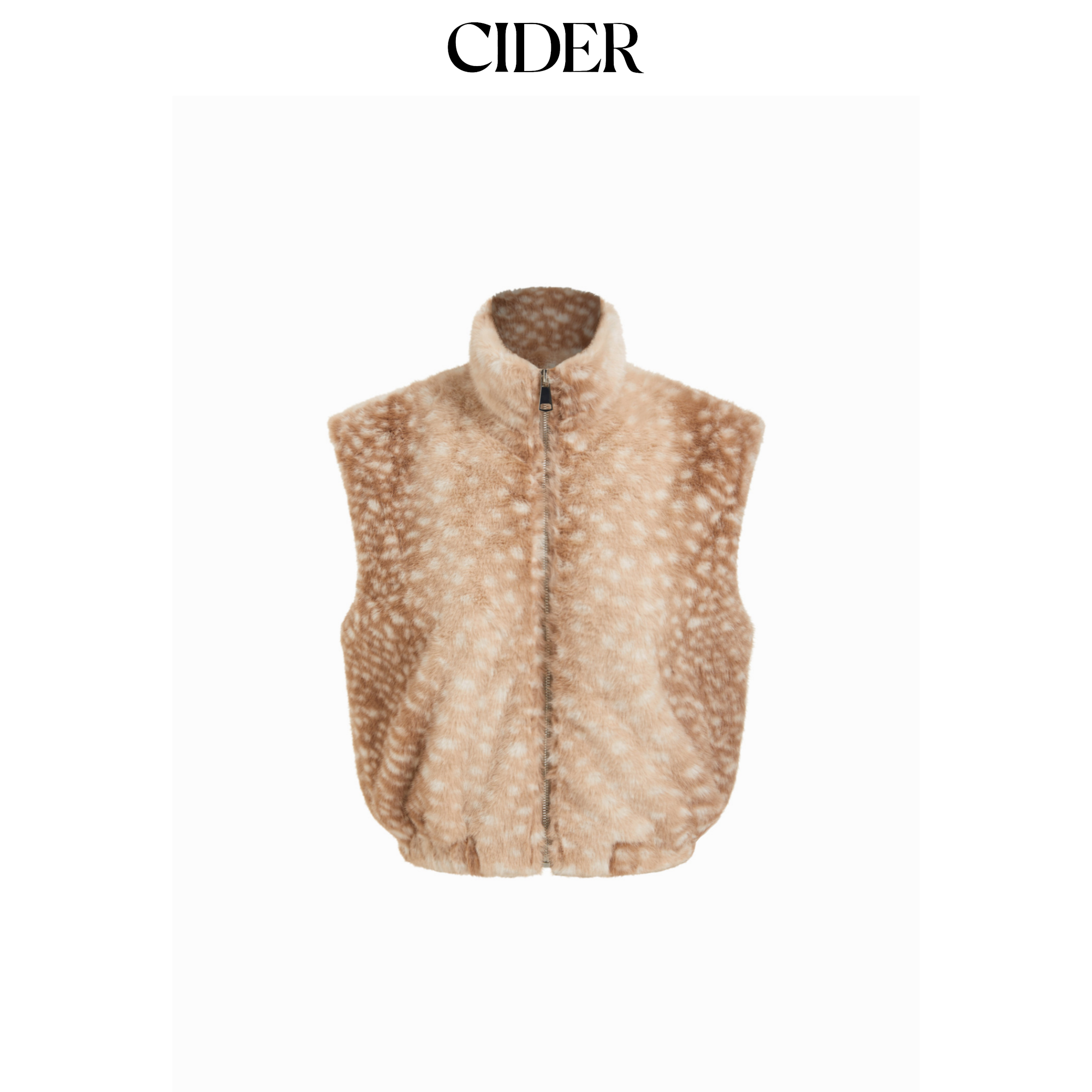 CIDER可爱风仿皮草印花立领拉链马甲外套115011518