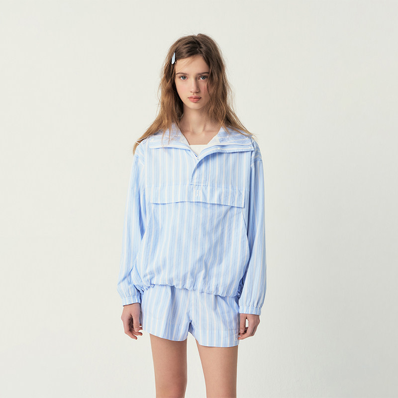 GROVE官方旗舰店2025SS春夏新款女士竖条纹梭织短裤宽松GR5PT02C
