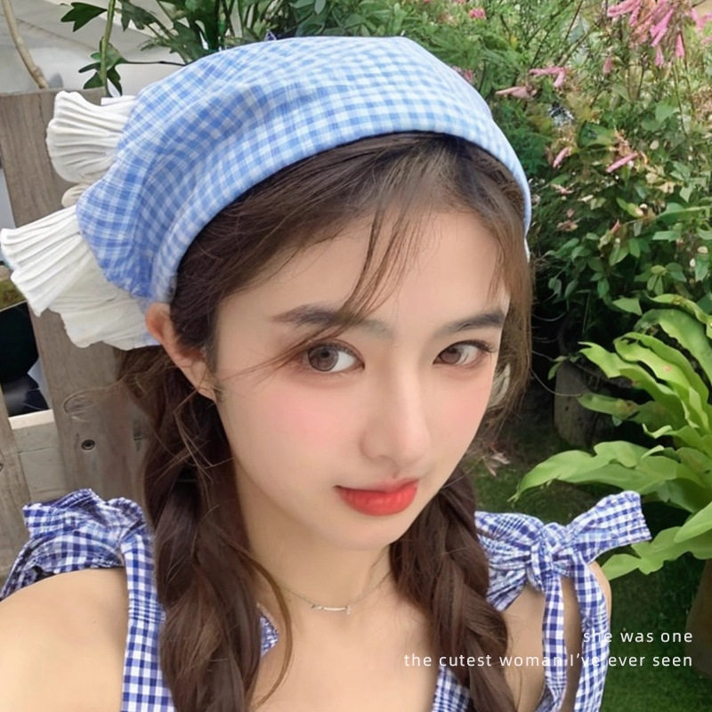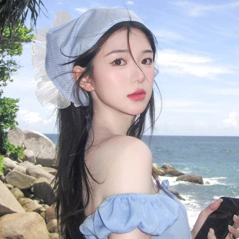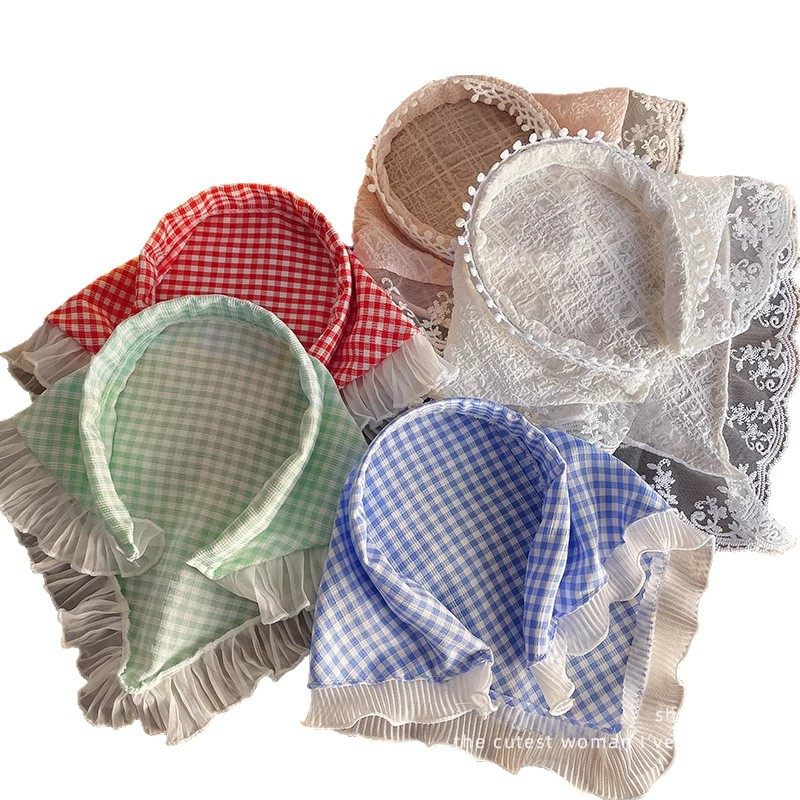 周也同款蕾丝头巾女田园风三角巾白色花边法式方巾发带氛围感头饰