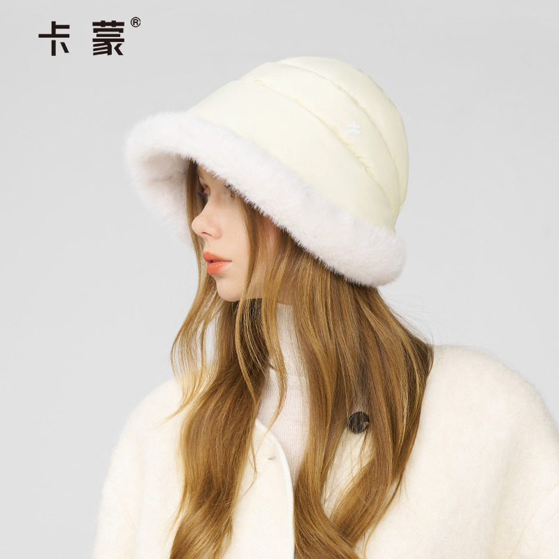 卡蒙鹅绒防风保暖渔夫帽女士大头大脸毛绒羽绒防寒护耳冬季帽子