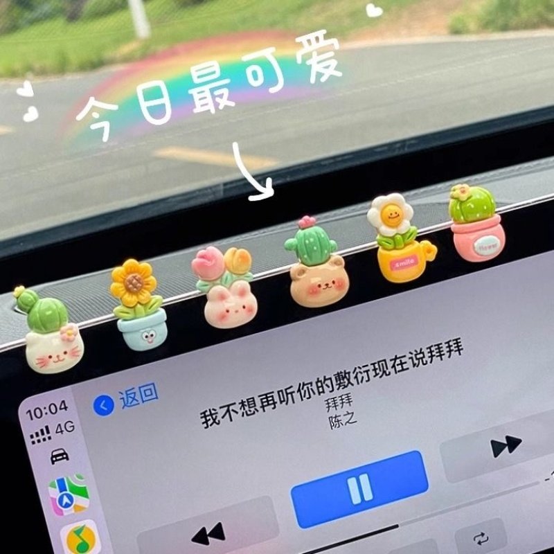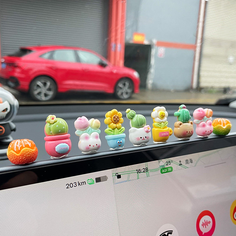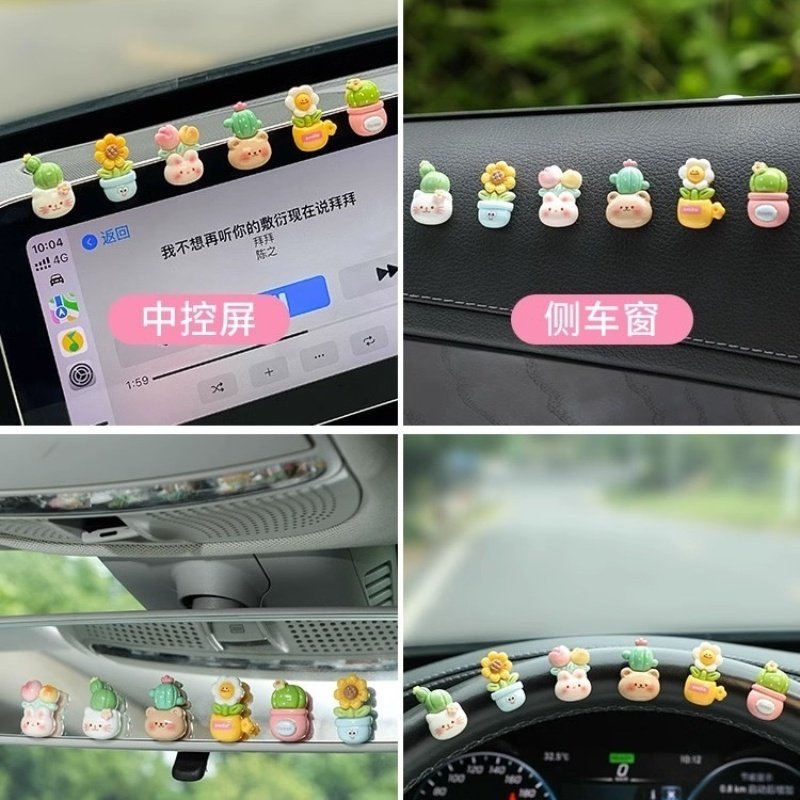 新款可爱仿真小花盆汽车摆件车载中控台女生车内用品配件装饰大全