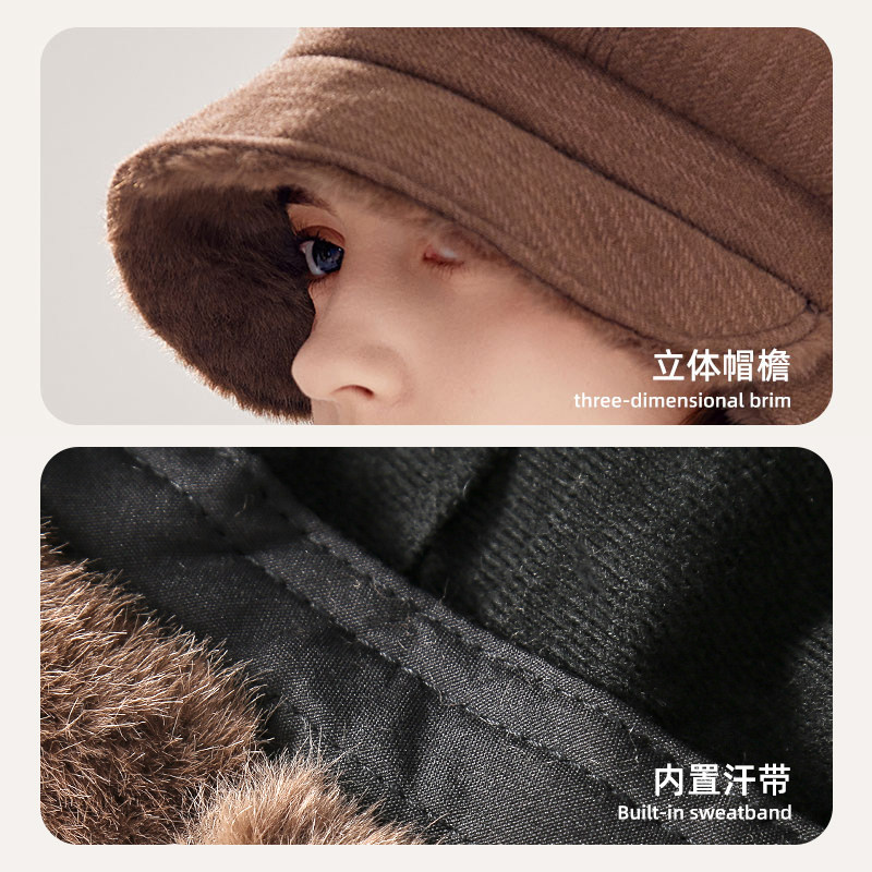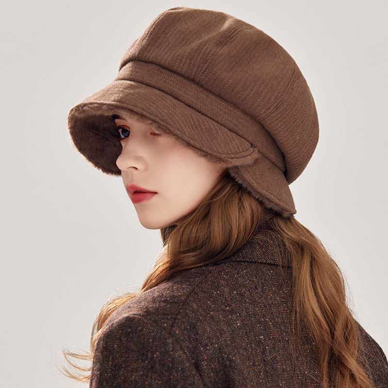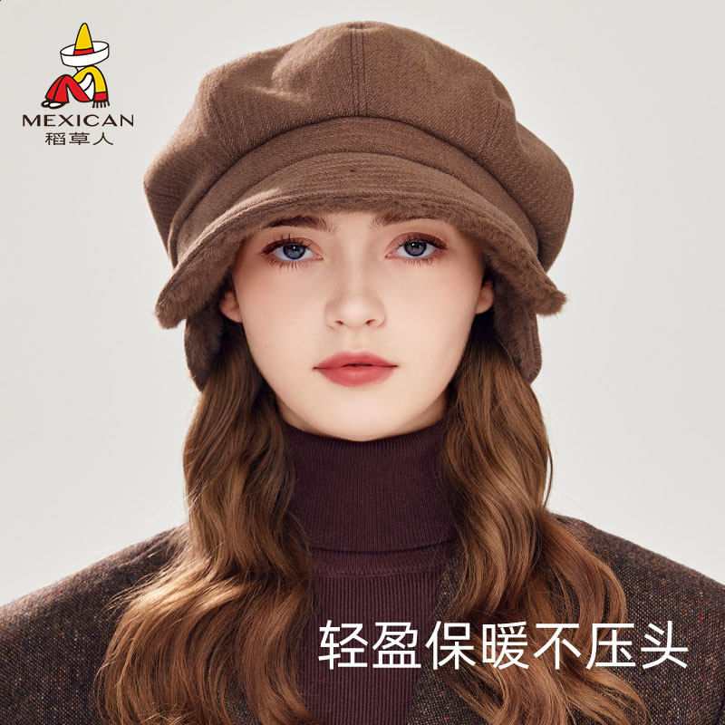 稻草人2025新款帽子女秋冬护耳加厚八角贝雷帽大头围显脸小渔夫帽