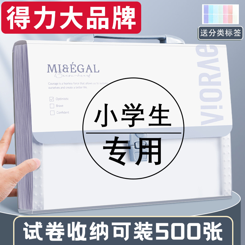 得力试卷收纳袋a4纸收纳夹试卷收纳整理神器小学生一年级装卷子的收纳袋手提文件夹分层式科目分类夹风琴夹子