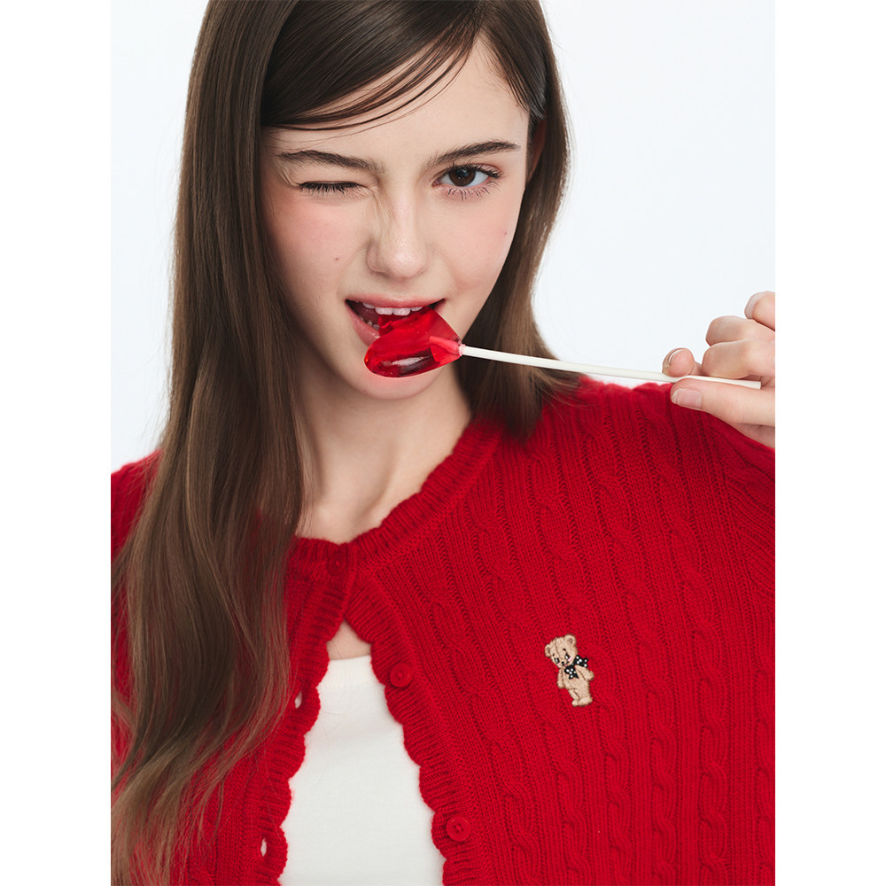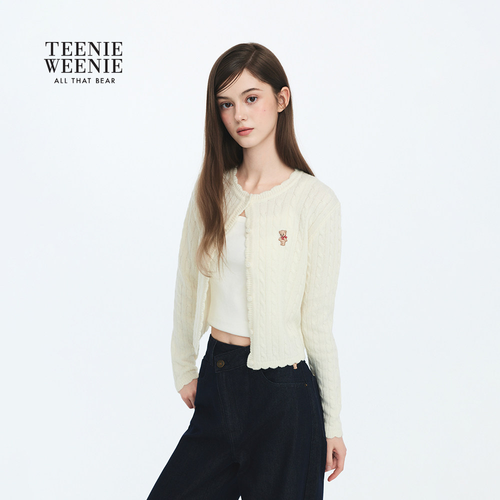TEENIEWEENIE bearnova26春季新款女装轻盈舒适时髦短款绞花开衫
