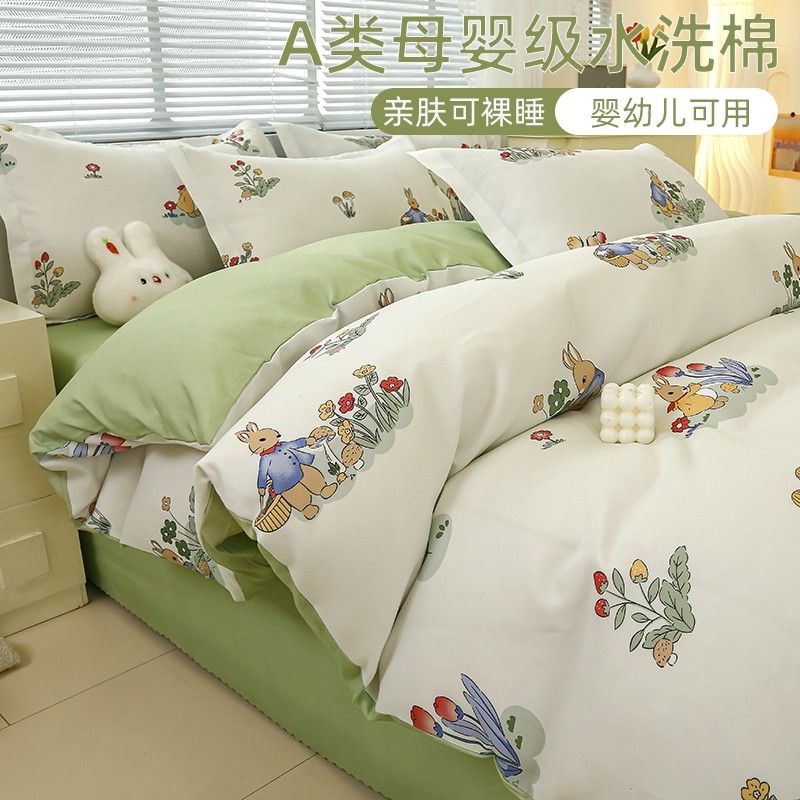 A类水洗棉双层纱四件套被罩非全棉纯棉床单人学生宿舍被套三件套