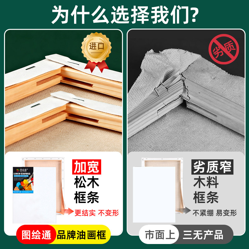 破损包赔 进口松木 不易变形 画布紧绷内框