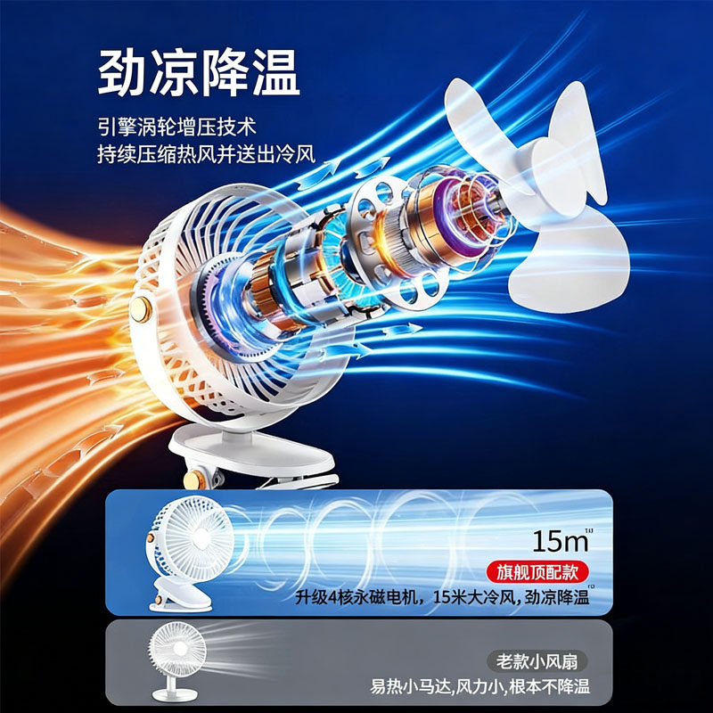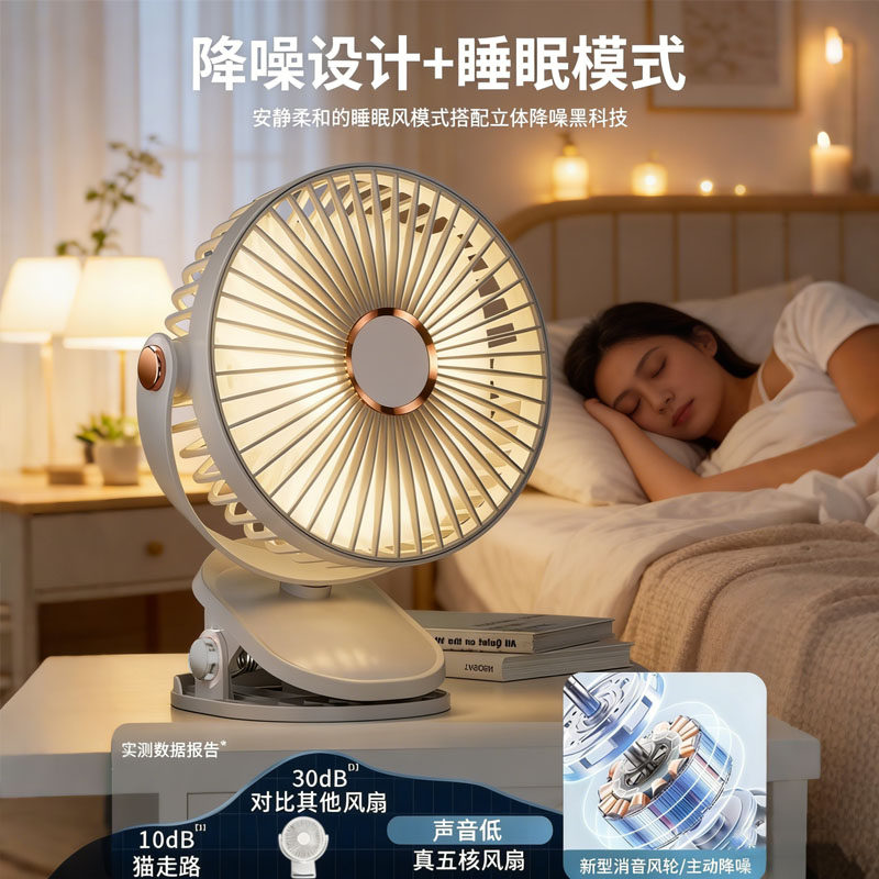 小风扇桌面夹式静音办公室宿舍学生婴儿床上壁挂摇头便携充电风扇