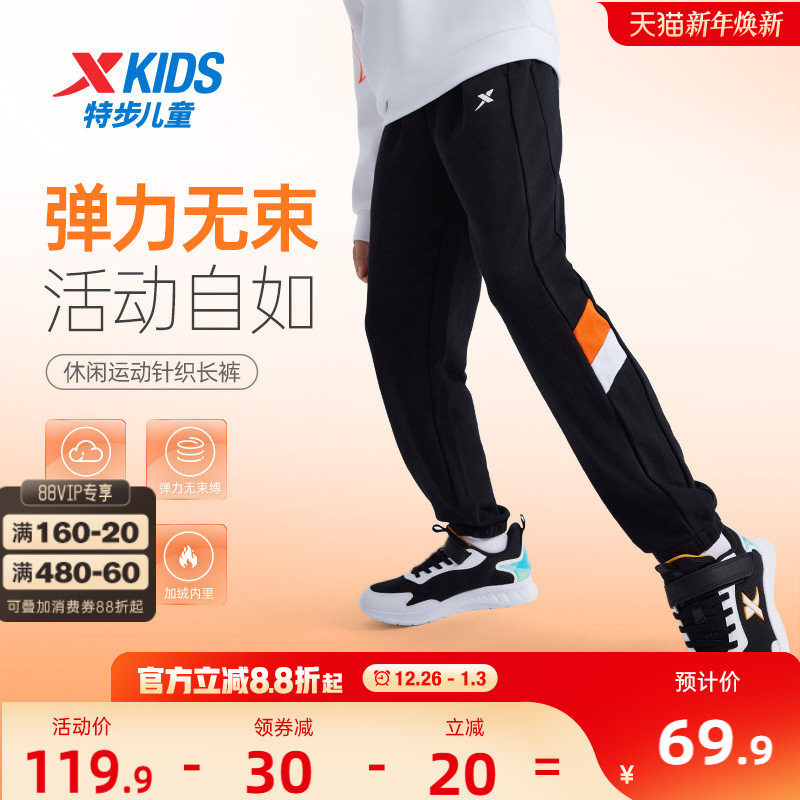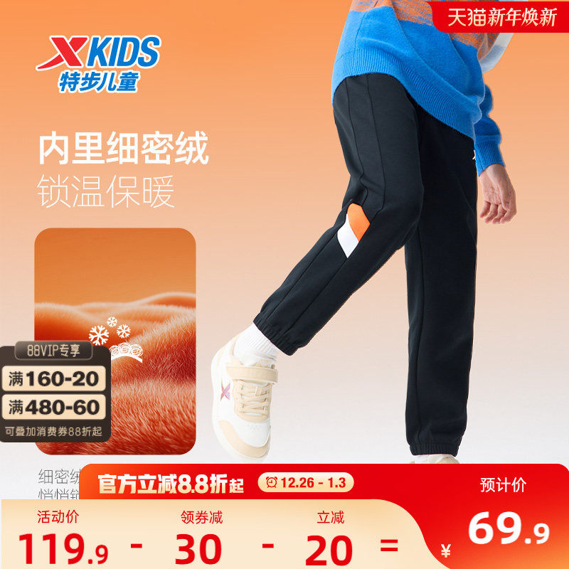 特步童装男童拼接运动裤儿童长裤2025秋冬新款中大童裤子加绒冬装