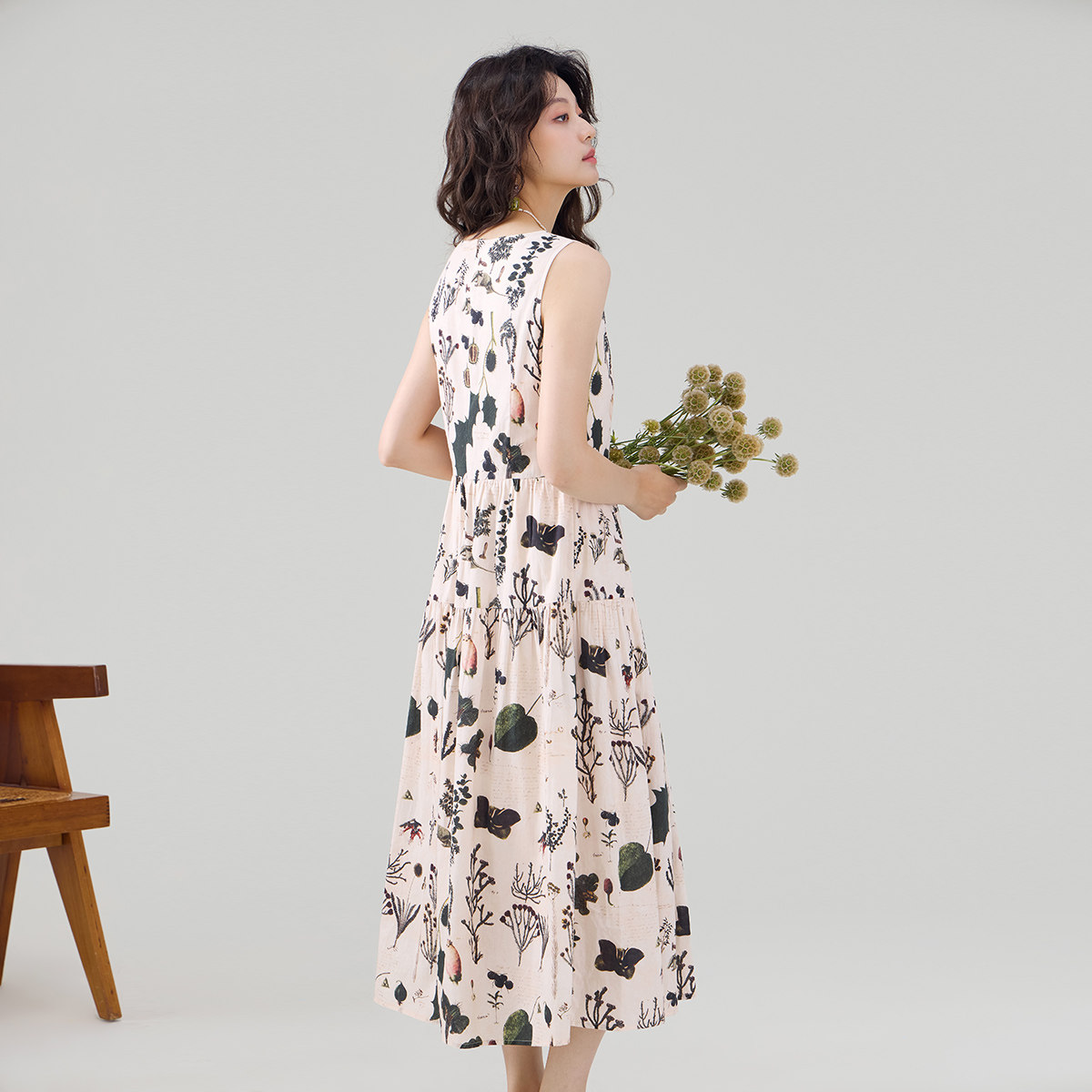 雨菲2025夏新款碎花v领飞飞边清冷大美人设计感显瘦斜裁连衣裙女