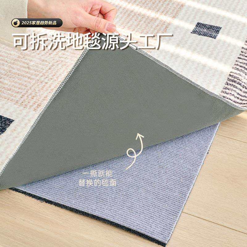可拆洗地毯客厅2025新款法式奶油风可机洗水洗地毯无胶水地垫双层