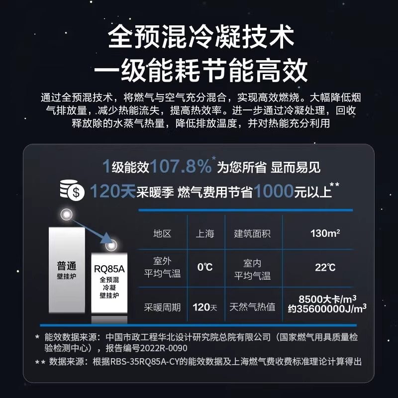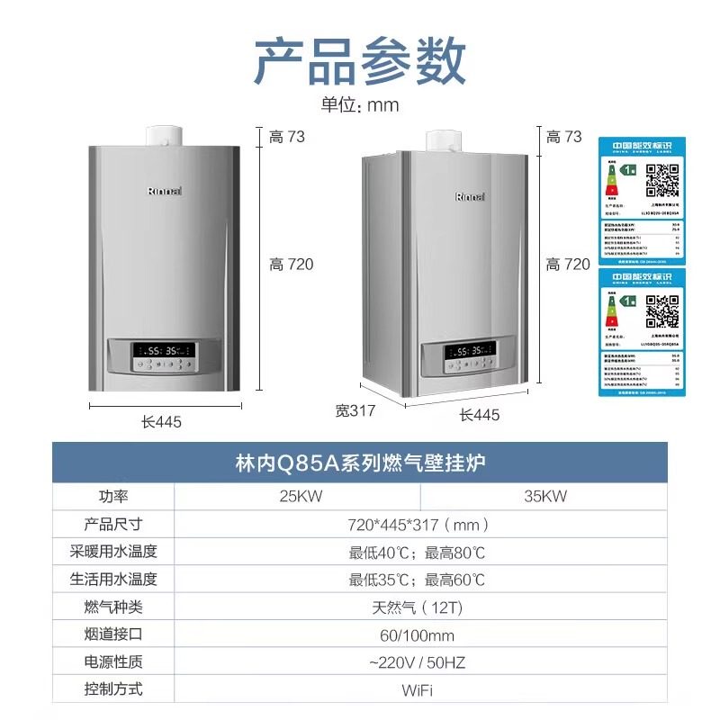 林内一级能效冷凝壁挂炉25RQ85A零冷水采暖智控睿擎地暖炉35RQ85A