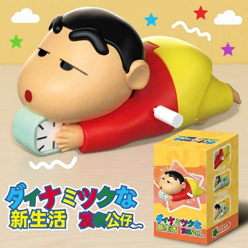 蜡笔小新动感新生活系列盲盒发条可动爬行潮玩动漫手办摆件玩具