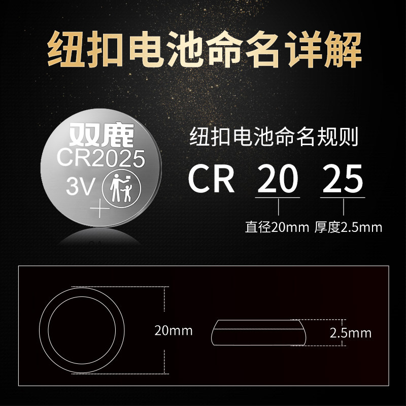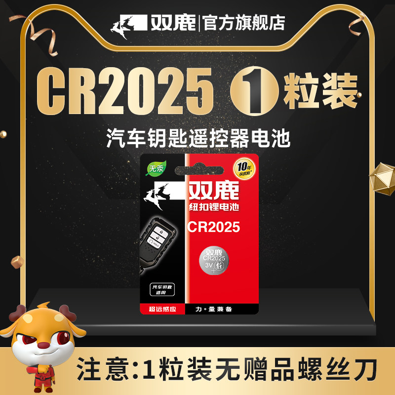 双鹿纽扣电池CR2025 3V锂电池主板手表适用于奔驰大众汽车钥匙小电子1粒