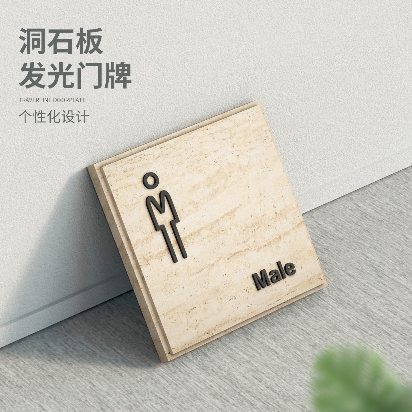 高端洗手间门牌石定制户外卫生间标识牌酒店会所男女提示牌天然洞石指示牌厕所标志挂牌餐饮茶室WC门口标示牌
