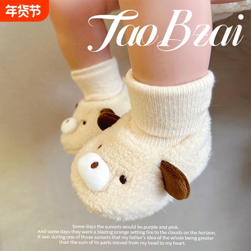 新生婴儿鞋子冬季保暖加绒男女宝宝棉鞋0-3-6-9个月鞋袜一体脚套
