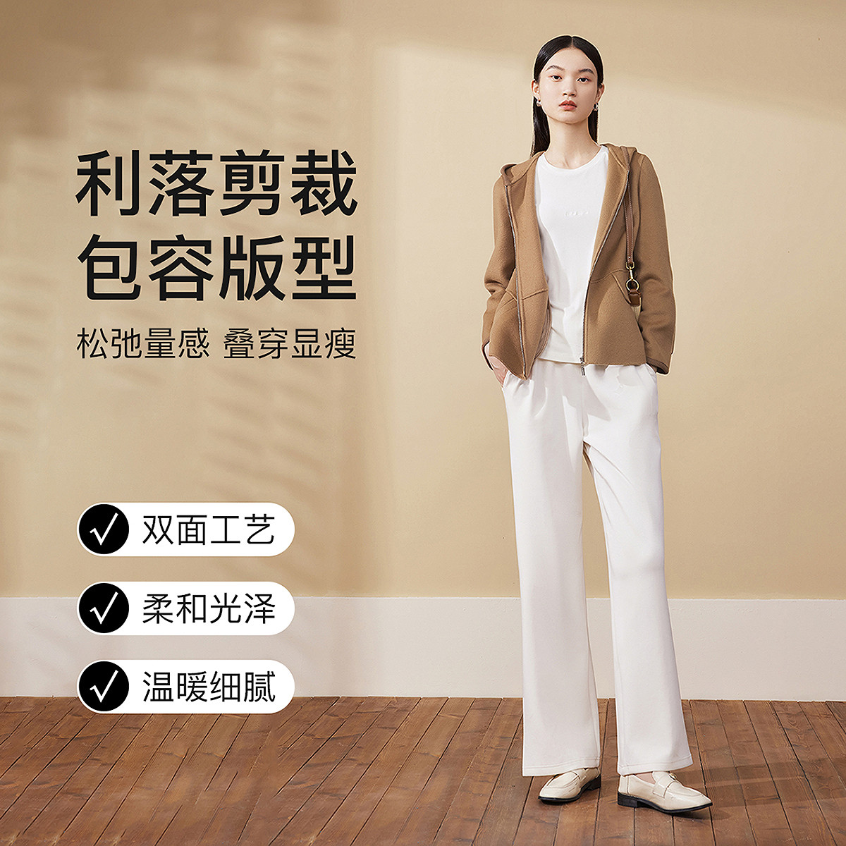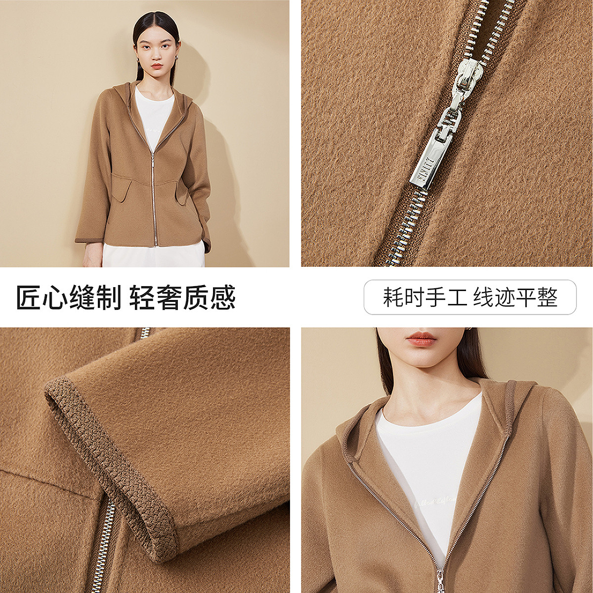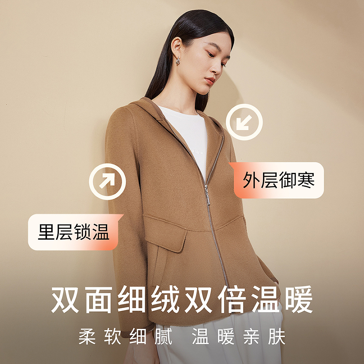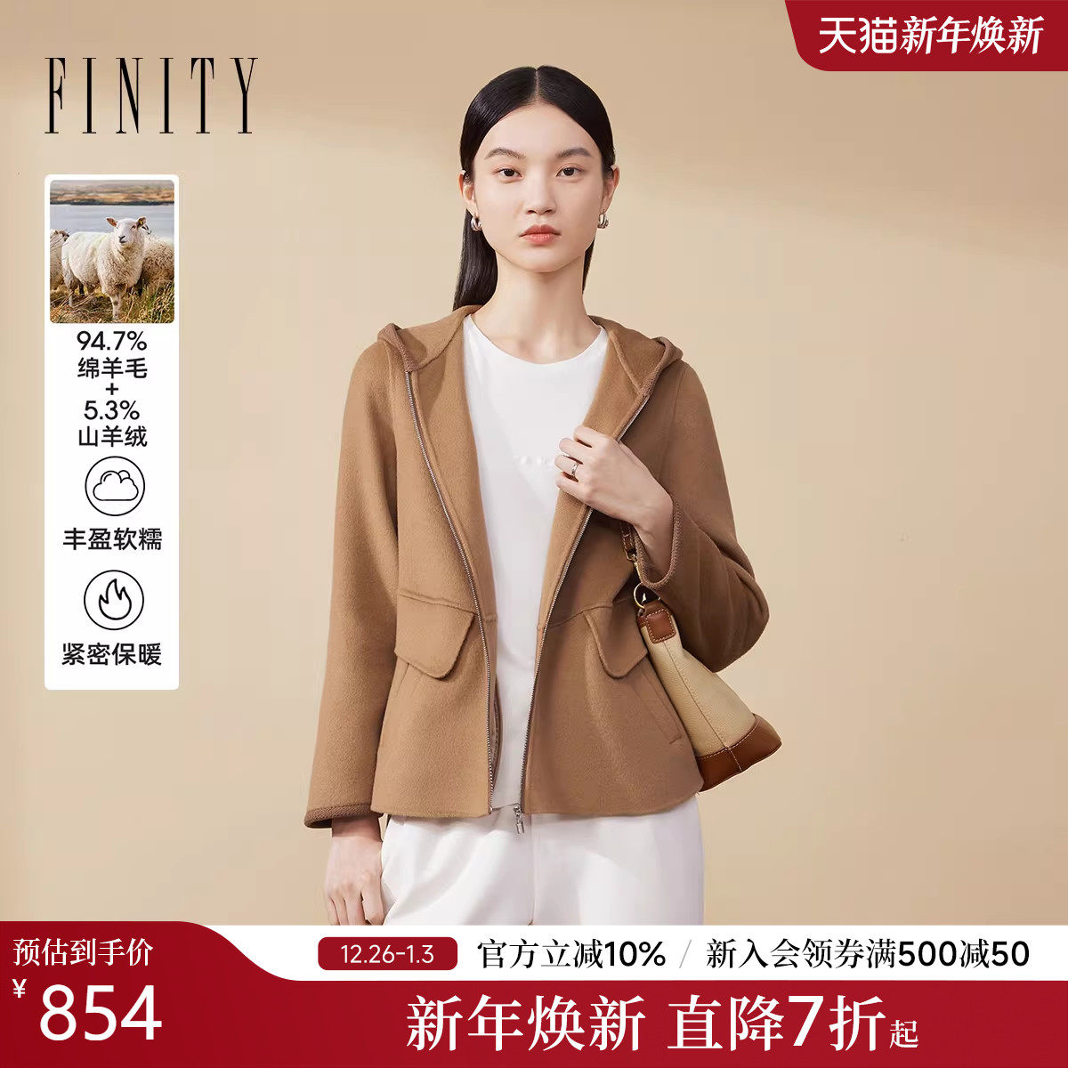 【绒感羊绒】FINITY菲妮迪毛呢外套2025冬季新款连帽双面呢大衣女