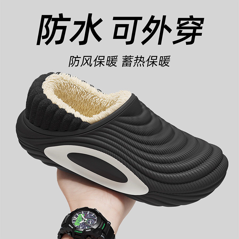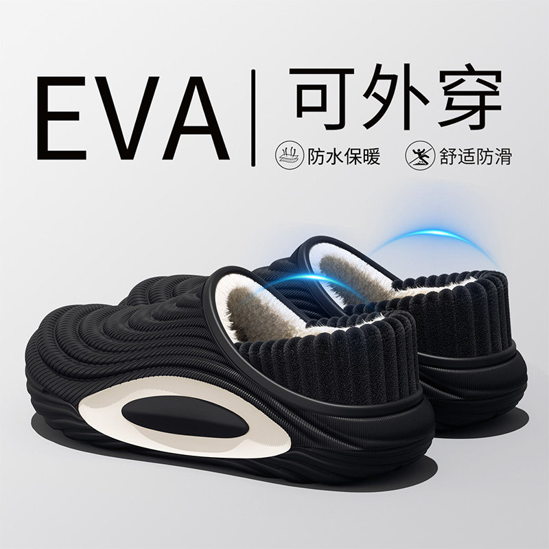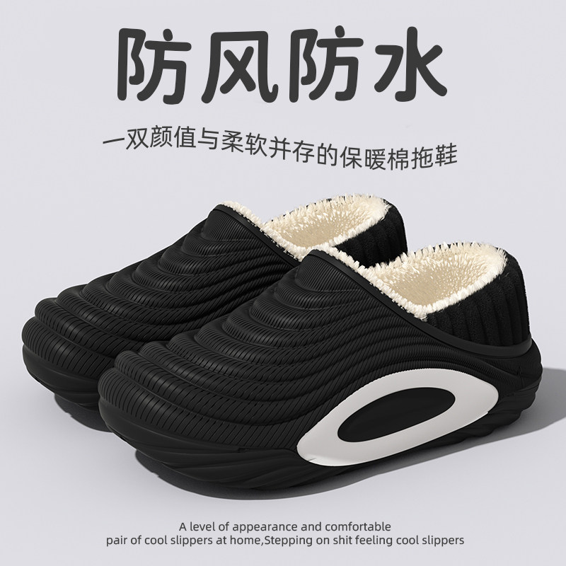 亚束棉拖鞋男士破茧外穿厚底增高情侣大码室内居家冬季保暖女新款
