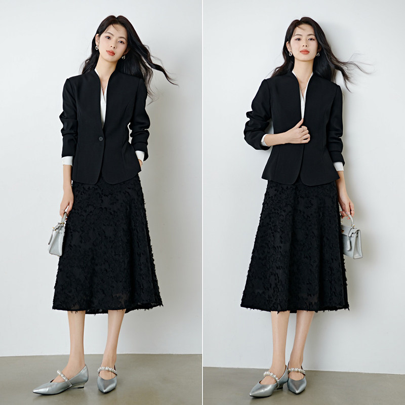 高级感黑色西装外套女2025年开春新款韩版宽松小个子休闲西服上衣