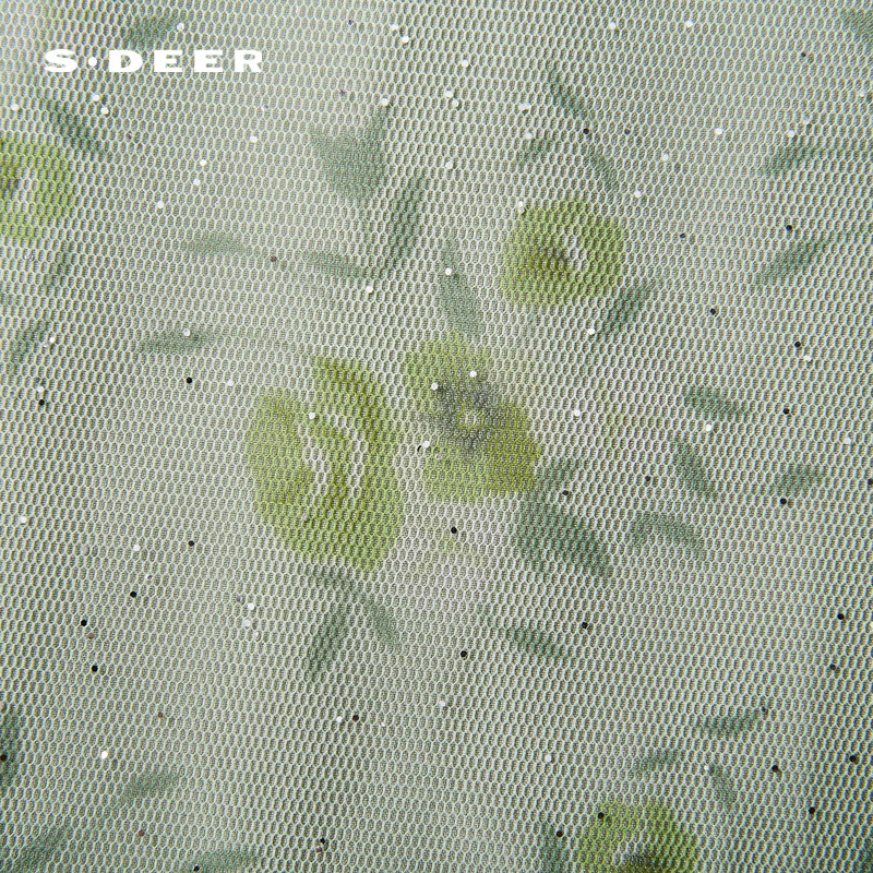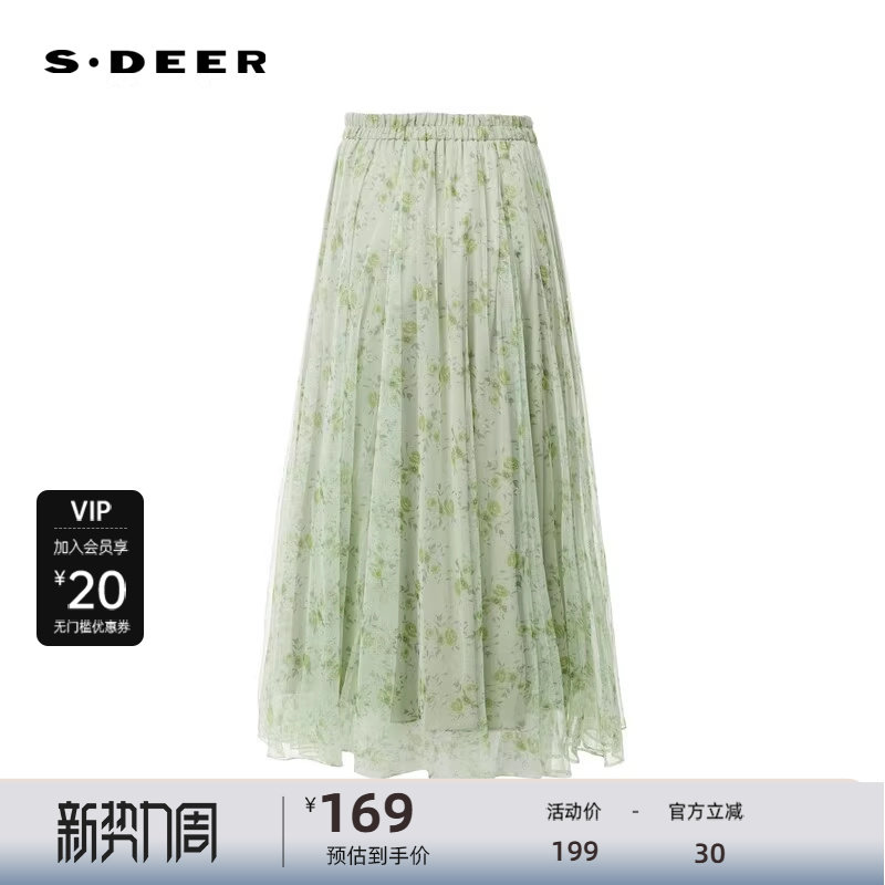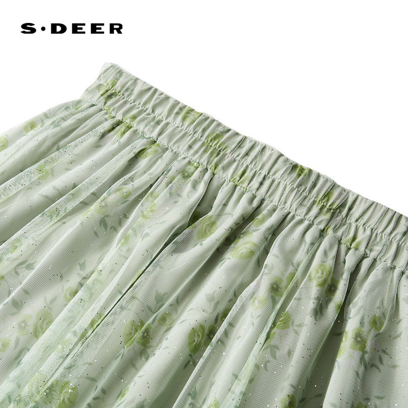 sdeer圣迪奥女装田园风松紧碎花网纱不规则伞裙S242Z1145