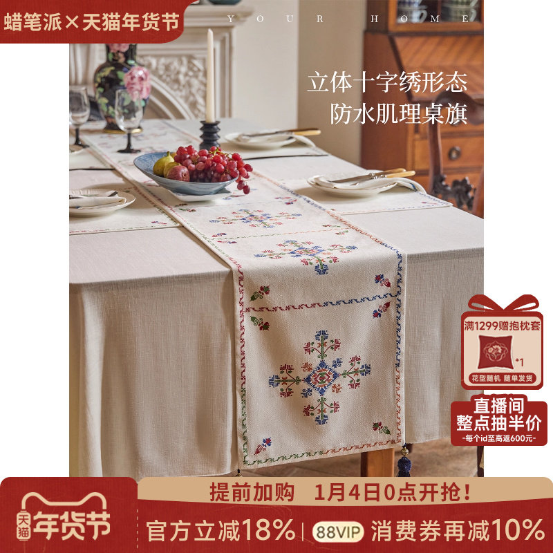 蜡笔派青篱桌旗法式复古防水轻奢高端氛围感餐桌盖布边柜盖布茶旗