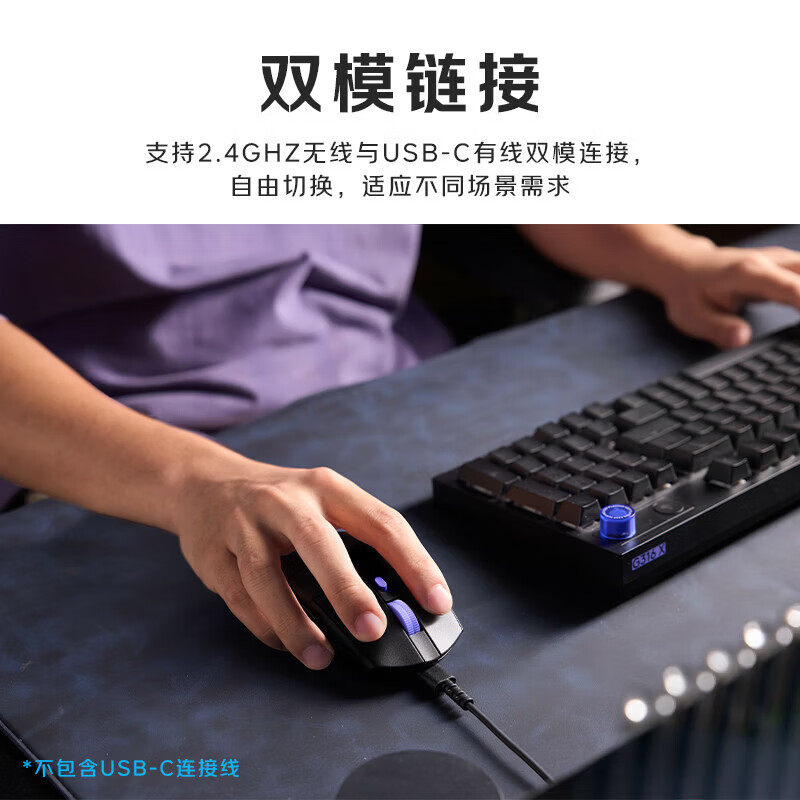 瓦尔基里VK M3有线/2.4G/蓝牙三模电竞鼠标8K无线接收器40g轻量化