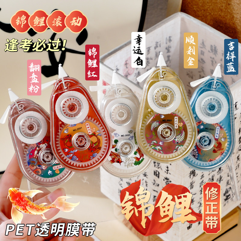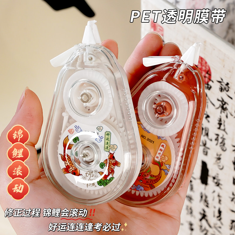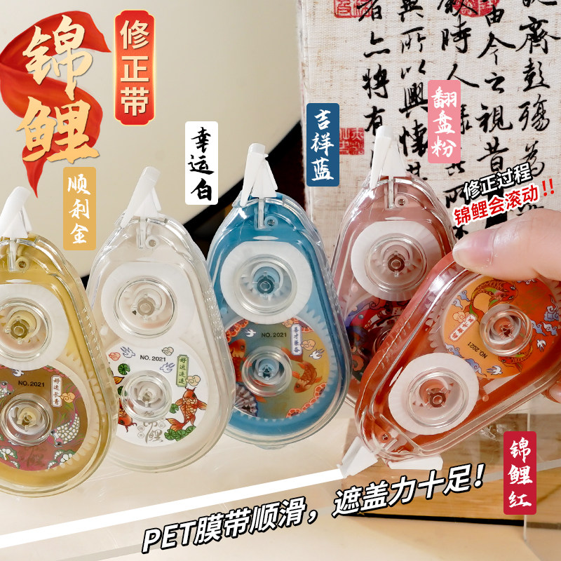 修正带小学生专用改正带涂改带锦鲤高颜值国潮顺滑不卡带静音初中生用大容量实惠装学生可爱防摔开学透明