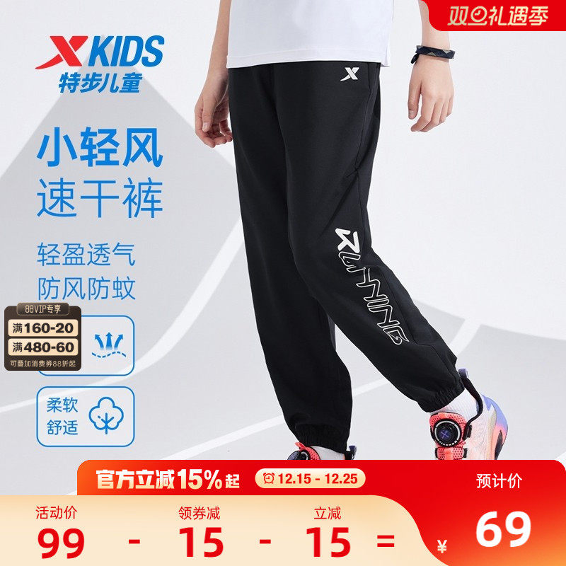 特步童装儿童运动裤中大童速干裤子2025夏季新款男童防蚊裤长裤子