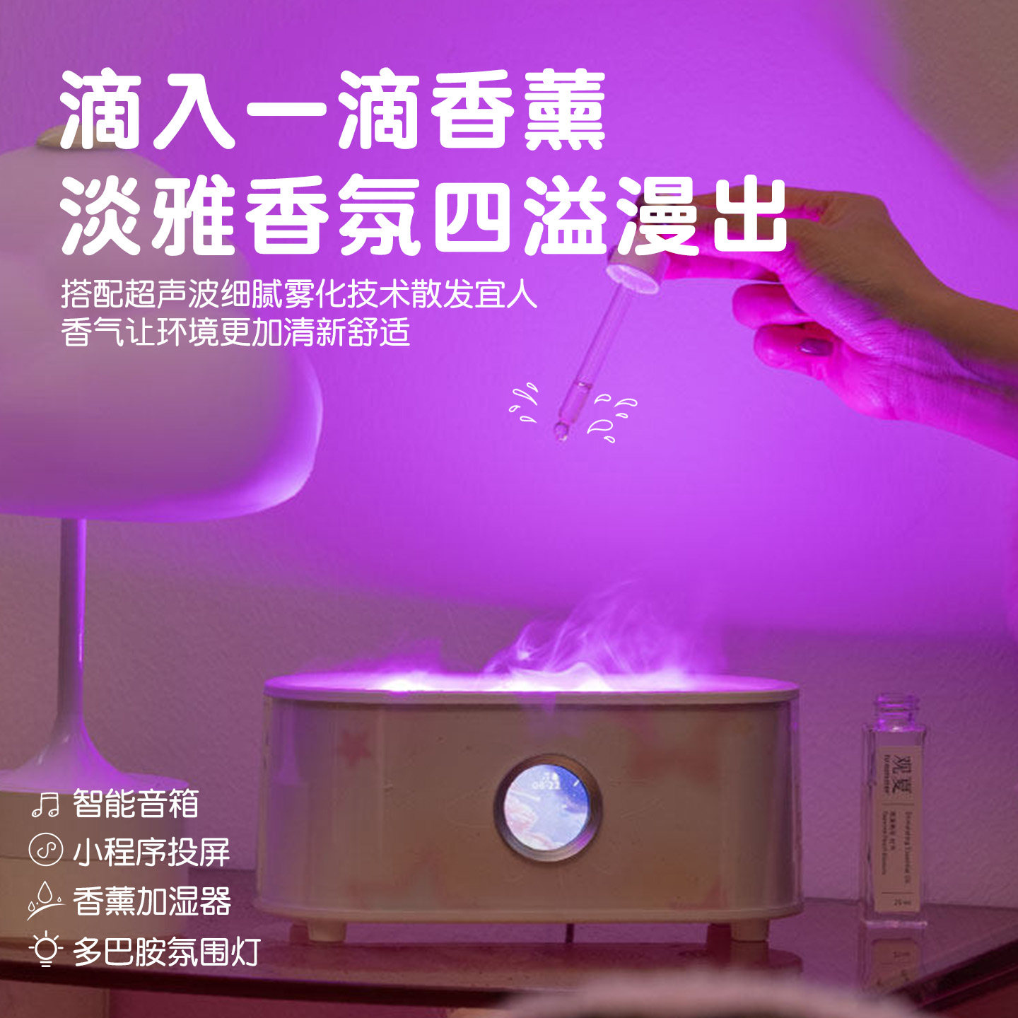 超声波香薰机卧室500ml加湿器自动喷香usb精油无印同款香薰灯家用静音喷雾电熏香炉办公室桌面空气雾化机补水