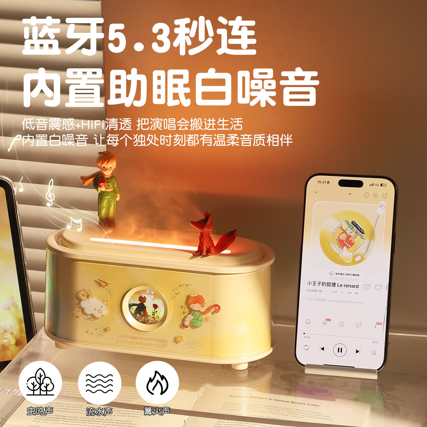 小王子加湿器音响卧室孕妇婴儿家用静音小型空气客厅大喷雾办公室桌面摆件室内增湿机生日礼物女生三八妇女节