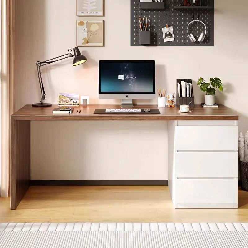实木书桌带抽屉斗柜一体台式桌卧室简易书桌家用学习桌书柜组合