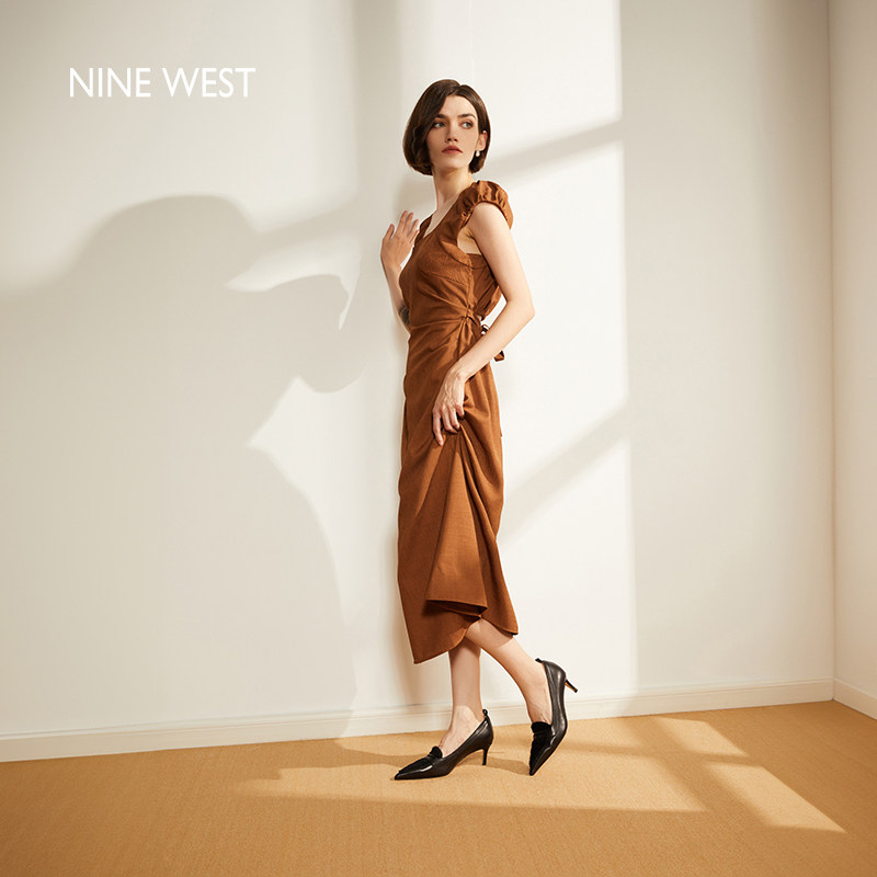 【商场同款】Nine West/玖熙高跟鞋女2025新款复古乐福鞋尖头单鞋