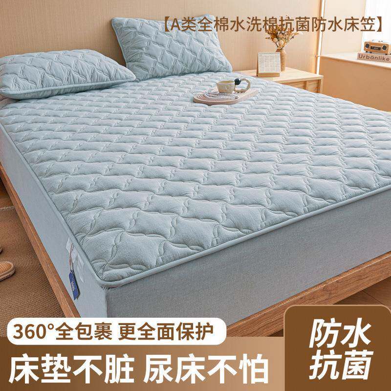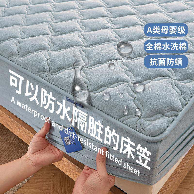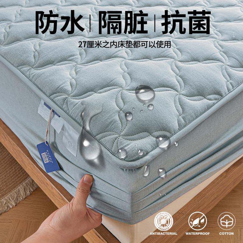 A类纯棉夹棉防水床笠三件套纯色床垫床褥隔尿垫席梦思保护垫
