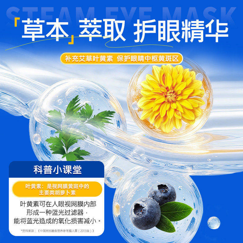 九芝堂叶黄素蒸汽眼罩缓解眼疲劳热敷黑眼圈发热艾草护眼睡眠遮光