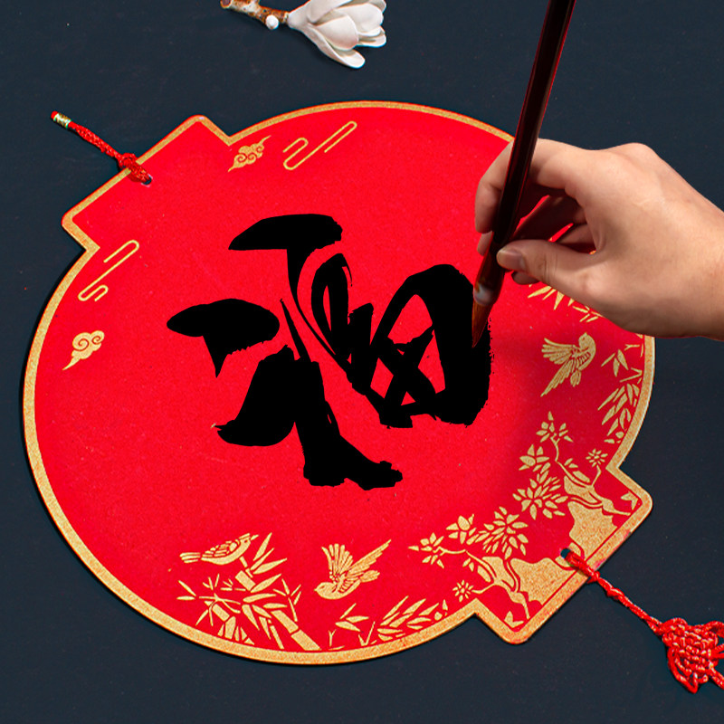 硬卡福卡挂件新款手写对联福字红纸斗方灯笼挂饰自写书法毛笔空白万年红宣纸双面灯笼卡纸新春节日中国结装饰