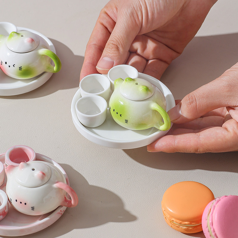 儿童仿真袖珍功夫茶具宝宝茶艺启蒙陶瓷茶具过家家扮演道具可喝水