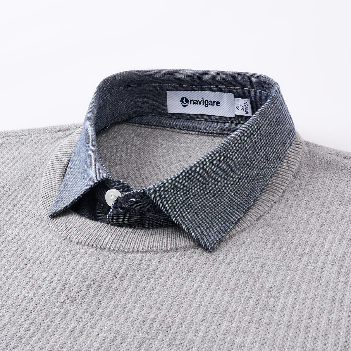 Navigare意大利小帆船假两件套头毛衣男冬季新款休闲打底针织衫