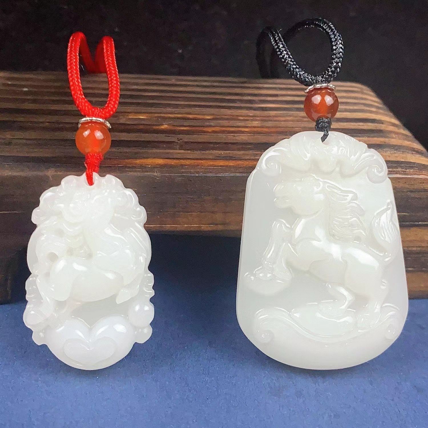 白玉十二生肖玉吊坠项链儿童玉石吊坠星座属相守护神玉佩生肖马
