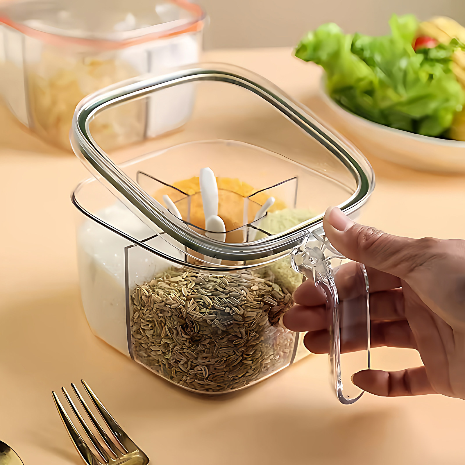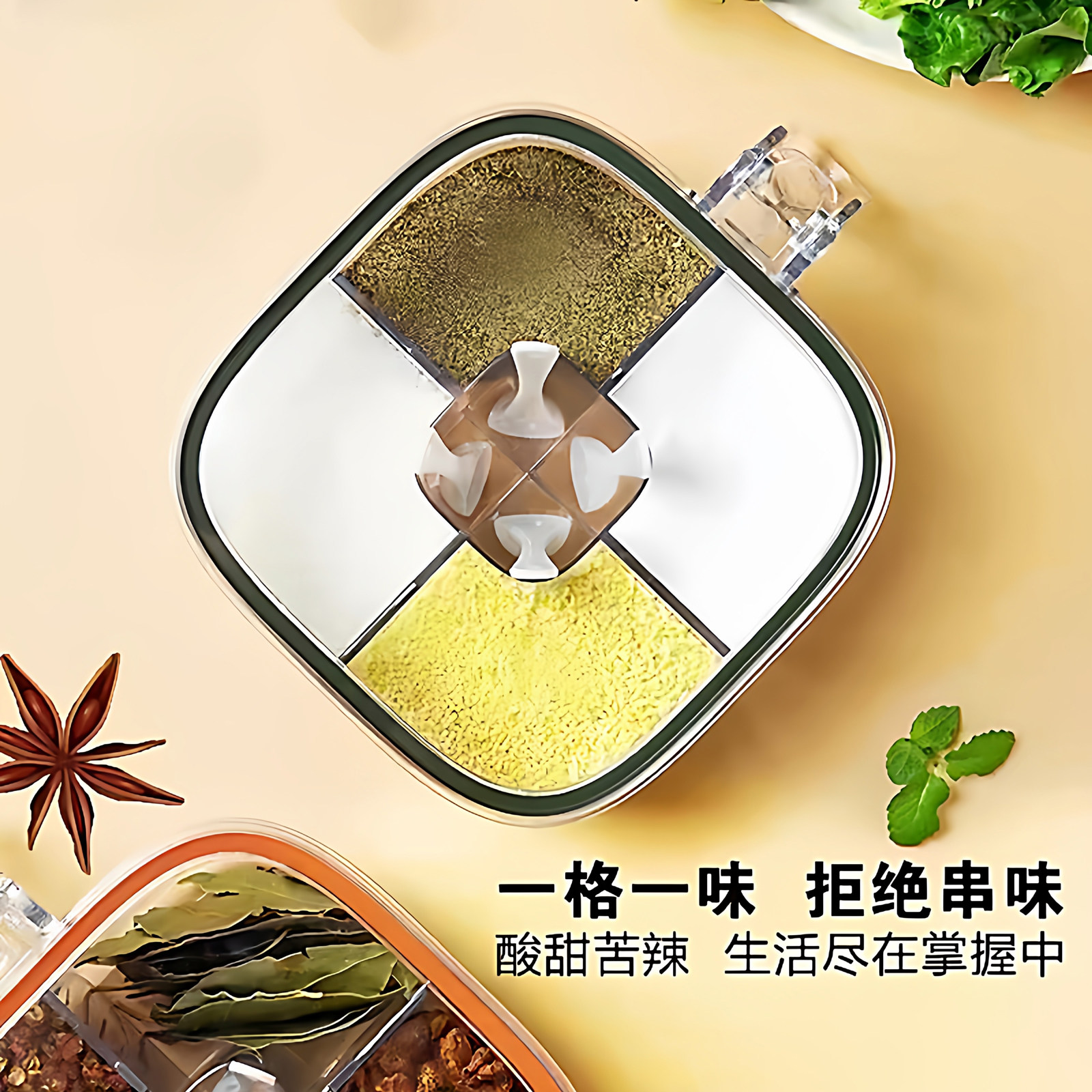 调料盒一体多格家用厨房调味罐盐巴佐料味精配料密封防潮四格收纳