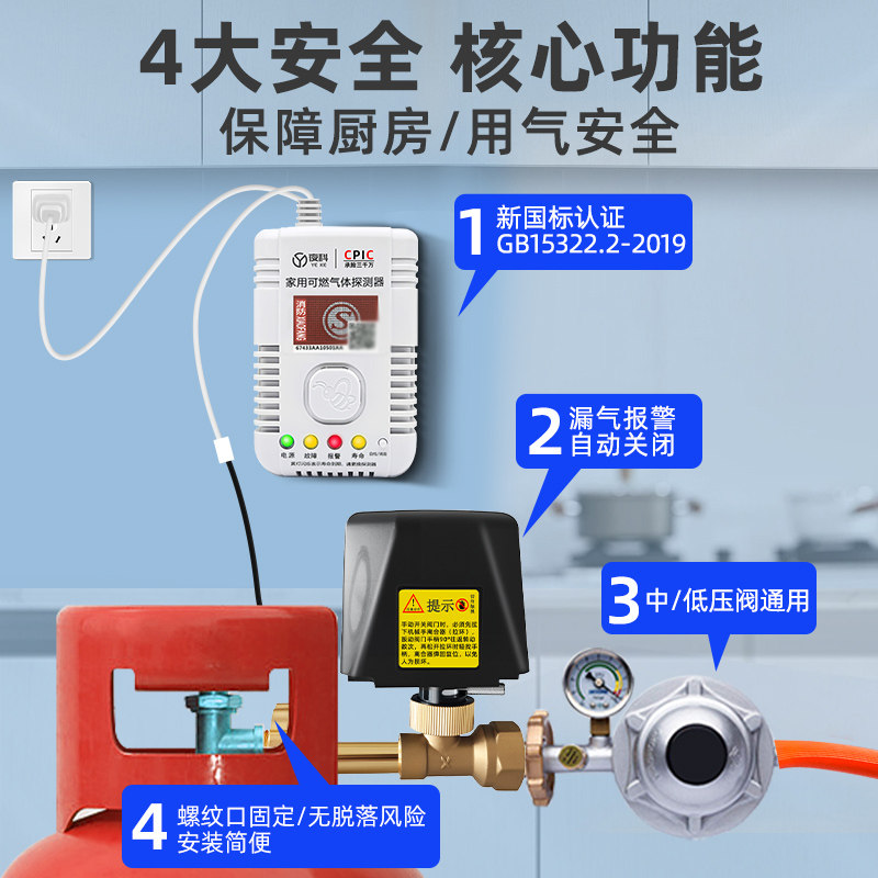 燃气泄漏报警器液化气煤气罐漏气自动安全阀家用天然气厨房无线