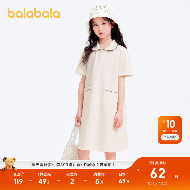 巴拉巴拉童装女童裙子夏装连衣裙A型POLO裙中大童时尚舒适宽松潮