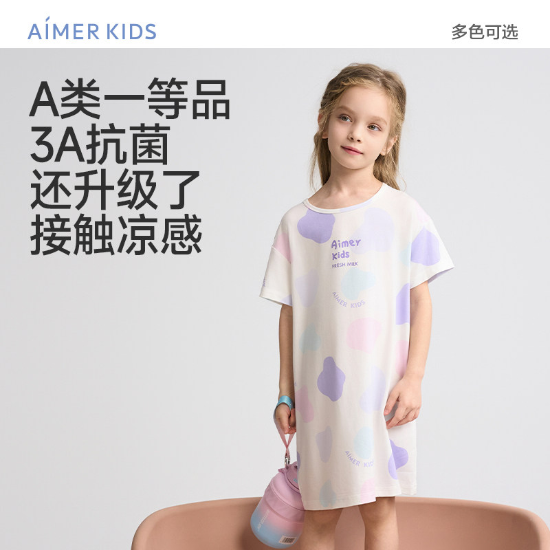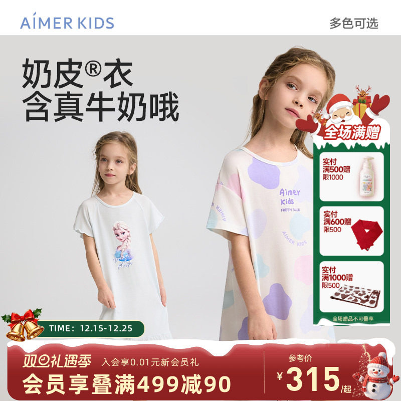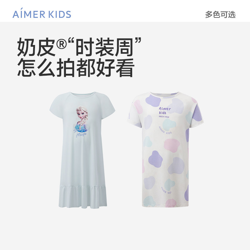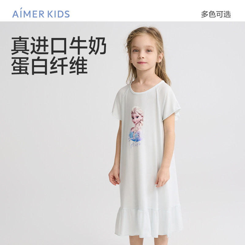爱慕儿童奶皮衣冰雪奇缘系列艾莎睡裙短袖A类家居服3A抗菌亲子