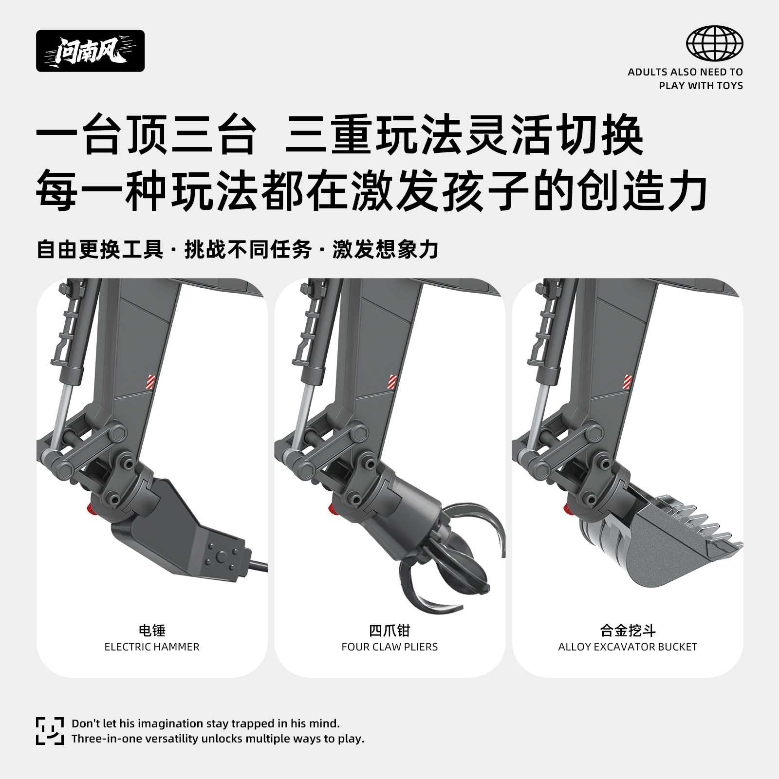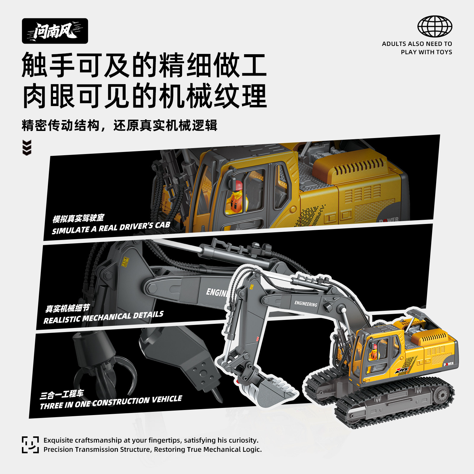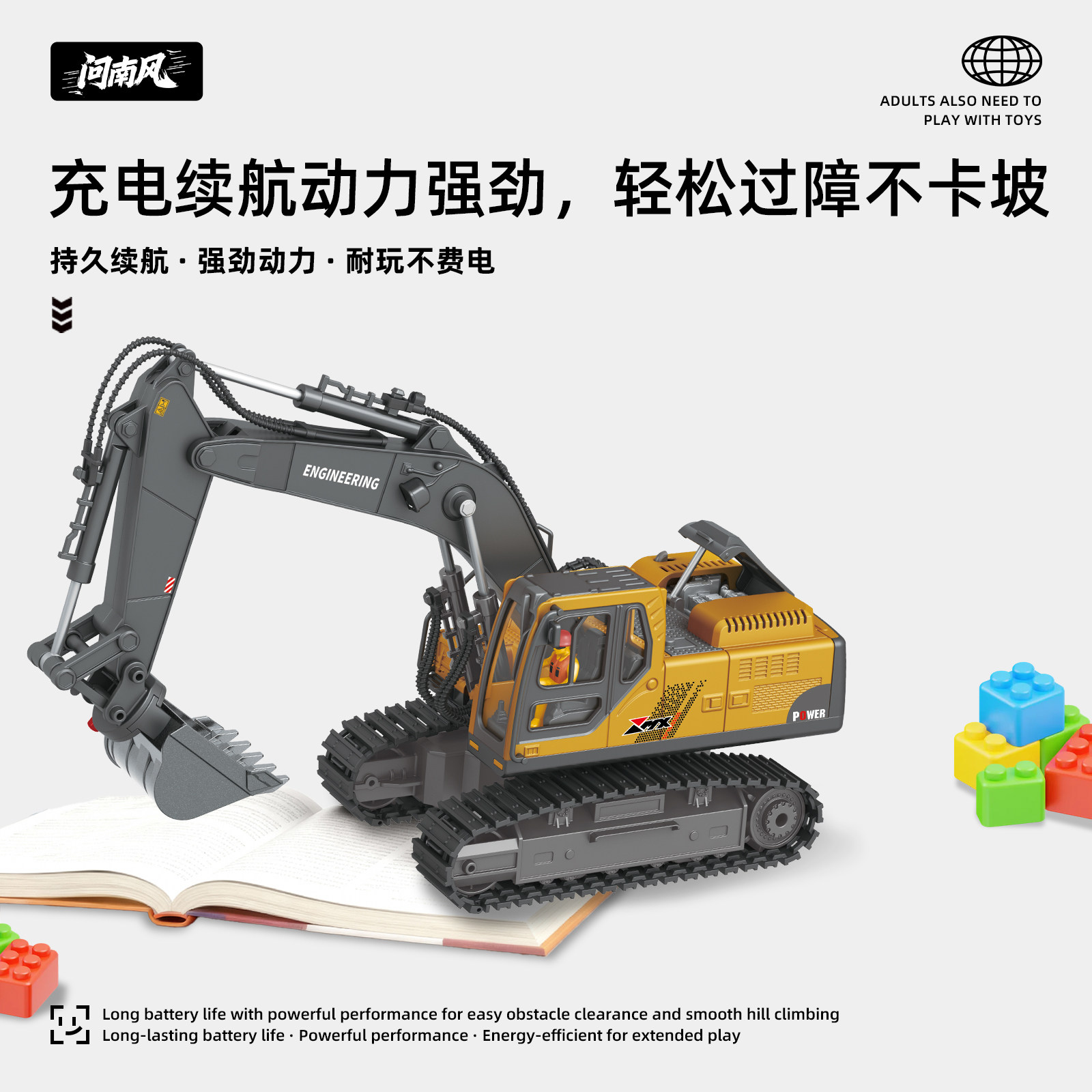 问南风 多功能合金遥控挖掘机玩具车工程车仿真挖土机电动挖挖机