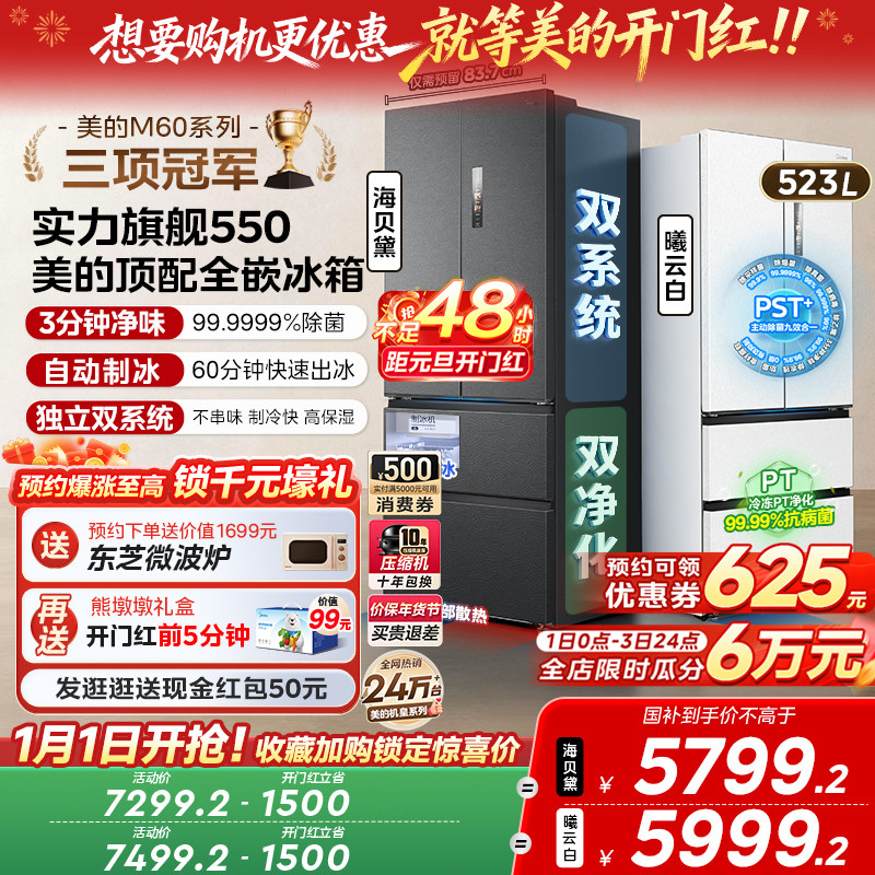 【自动制冰】美的机皇550双系统零嵌入式家用冰箱法式双开无霜