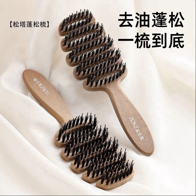 松塔猪鬃护发梳蓬松猪鬃毛松塔梳按摩头部防静电顺发排骨多规格起