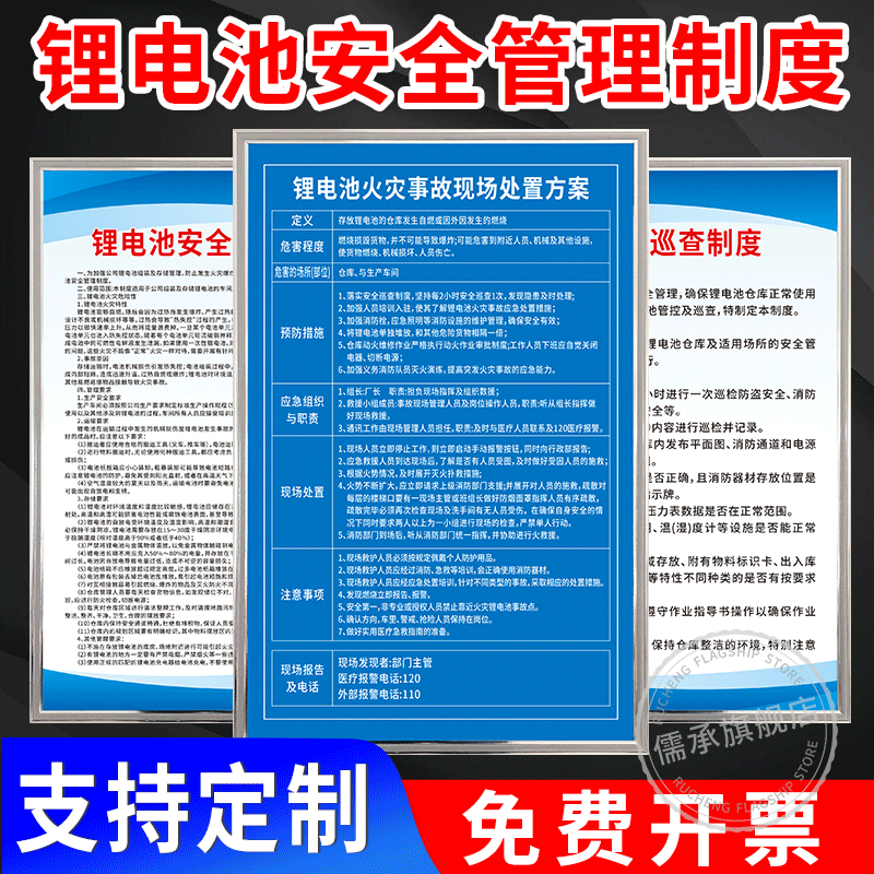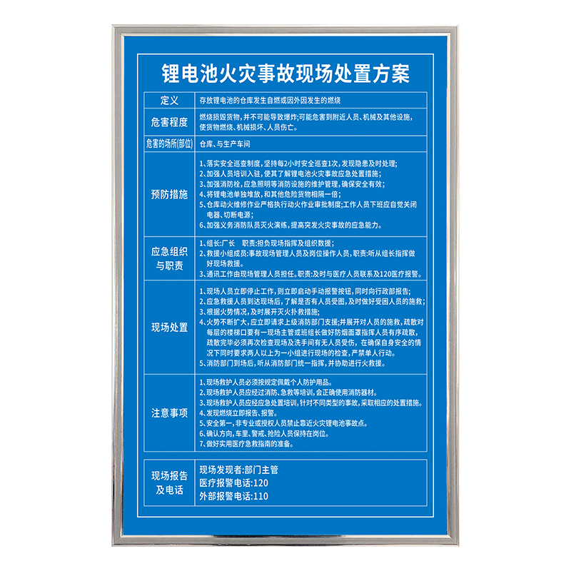锂电池安全管理制度牌火灾事故现场处置方案仓库风险告知卡标识牌